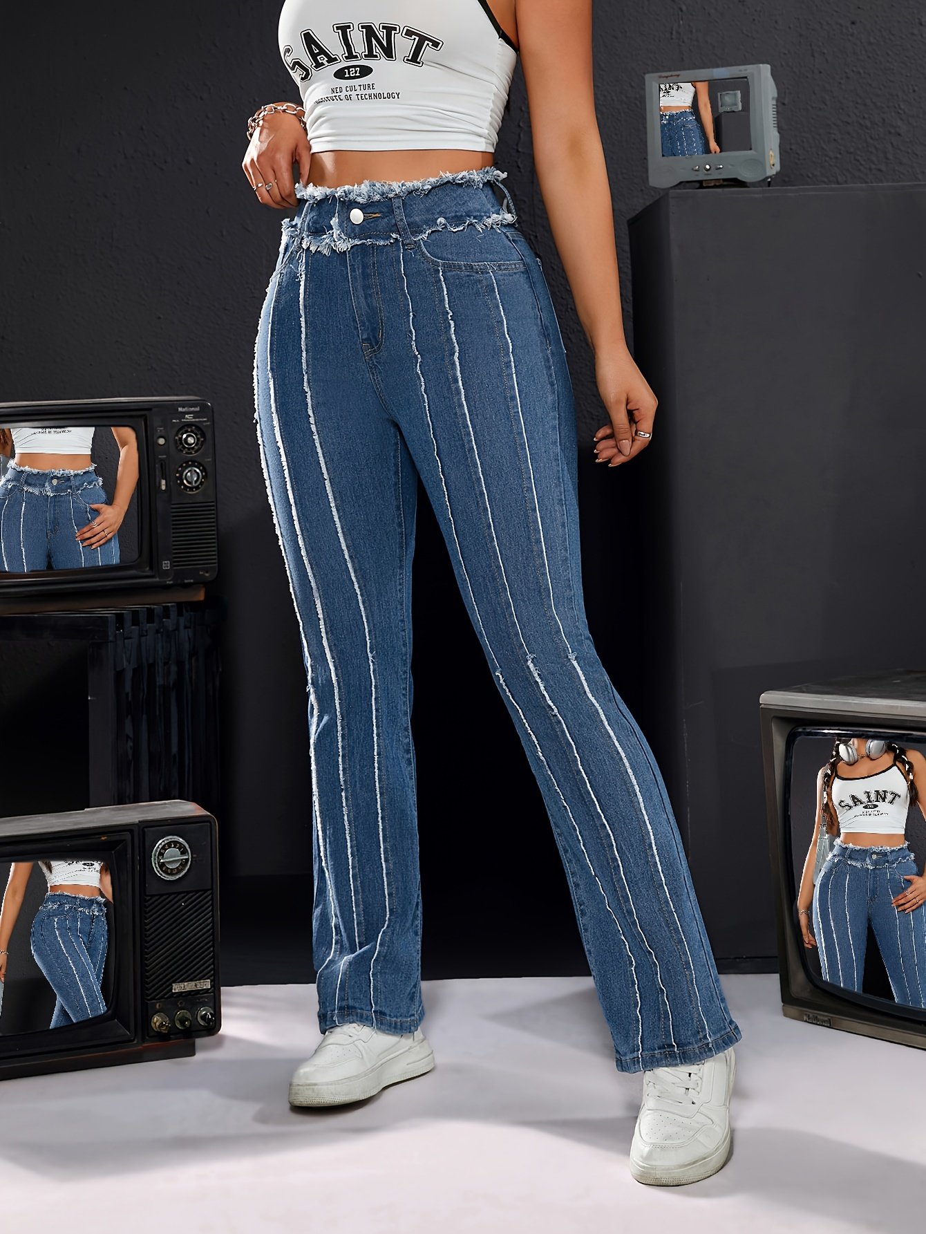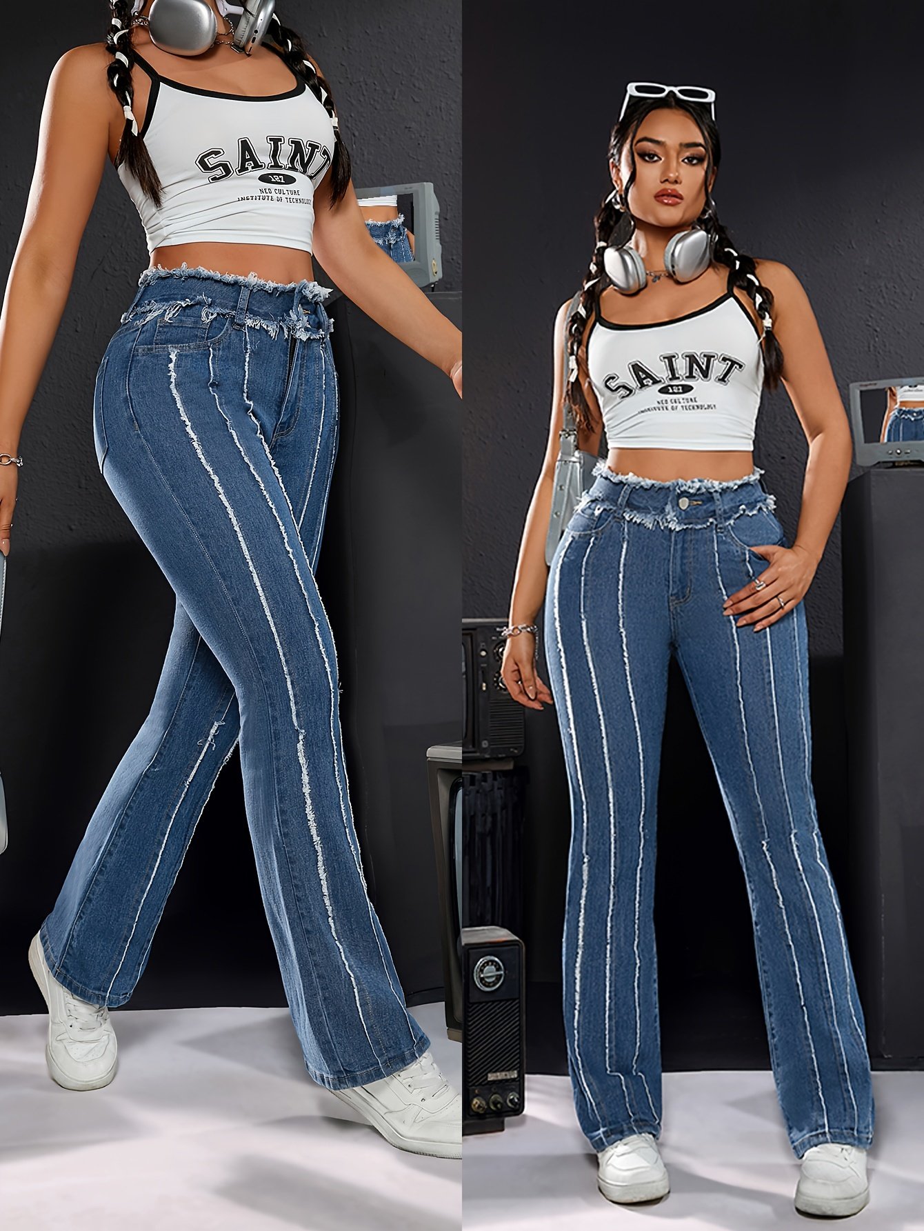 Elevate your everyday style with these elegant “Flare” jeans featuring raw hems! More than just a pair of jeans, they are a work of art specially designed to give you a bold, modern look and unparalleled comfort. Thanks to their distinctive cut and unique details, these jeans will become your first choice for your refreshed looks every season. Get ready to turn heads with this perfect blend of style and practicality.