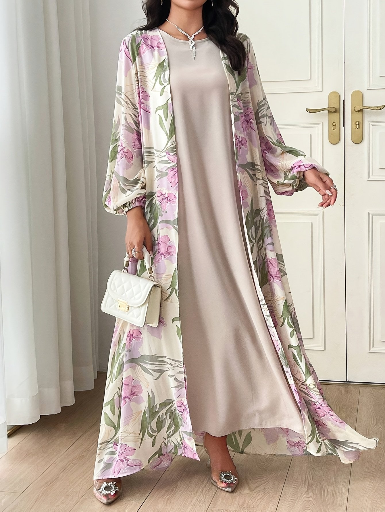 - Printed Lantern Sleeves: The long sleeves with a lantern design add a modern and luxurious touch, with unique random floral prints that highlight the beauty of your look and make it stand out.