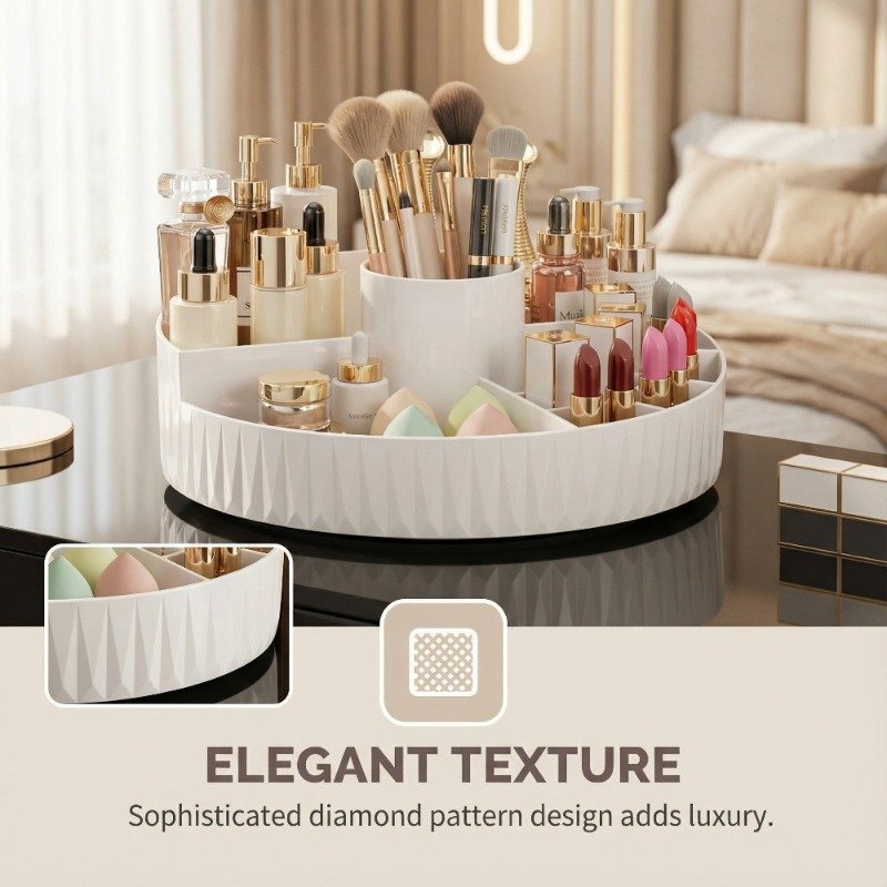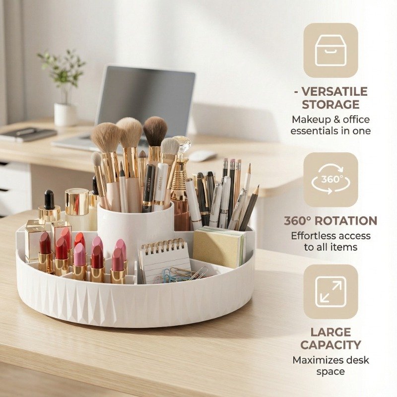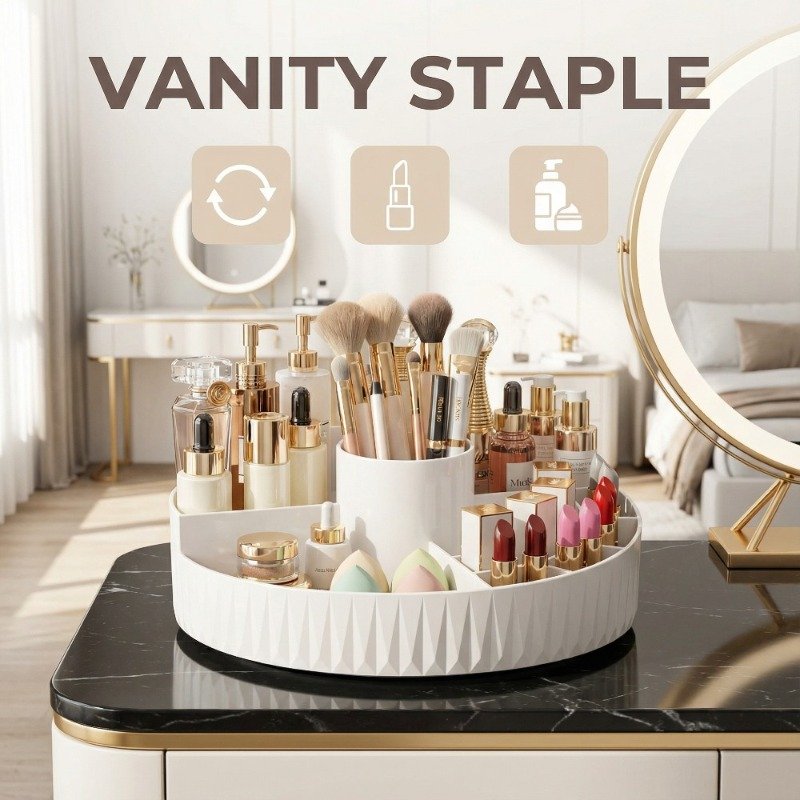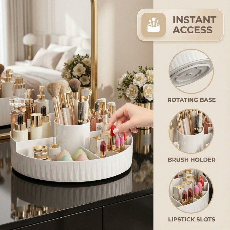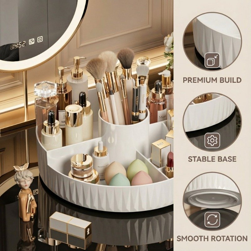 - Smooth 360-Degree Rotation: Enjoy easy and quick access to all your cosmetics from any angle, without the hassle of searching or flipping items. With a single spin, all your tools are within reach.