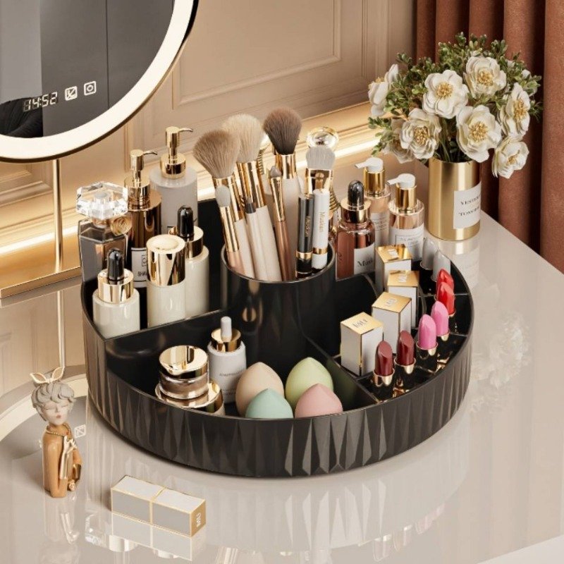 Are you tired of cluttered and scattered cosmetics? Are you looking for a smart solution that combines ultimate elegance with multi-functionality to make your daily routine easier and more enjoyable? Say goodbye to clutter and welcome optimal organization with the 360-degree rotating beauty organizer, specially designed to meet your beauty needs and provide a tidy and elegant space for all your tools and products.