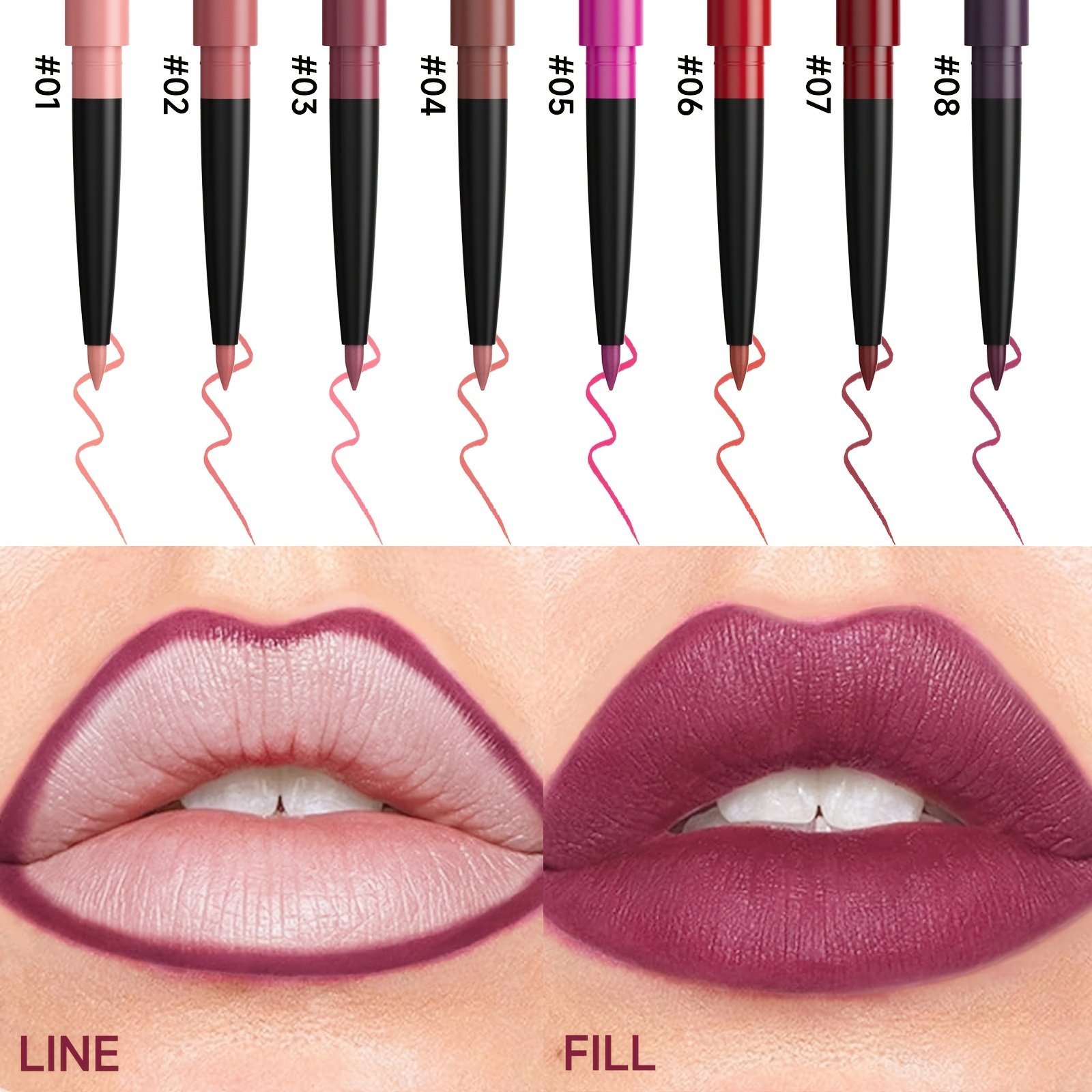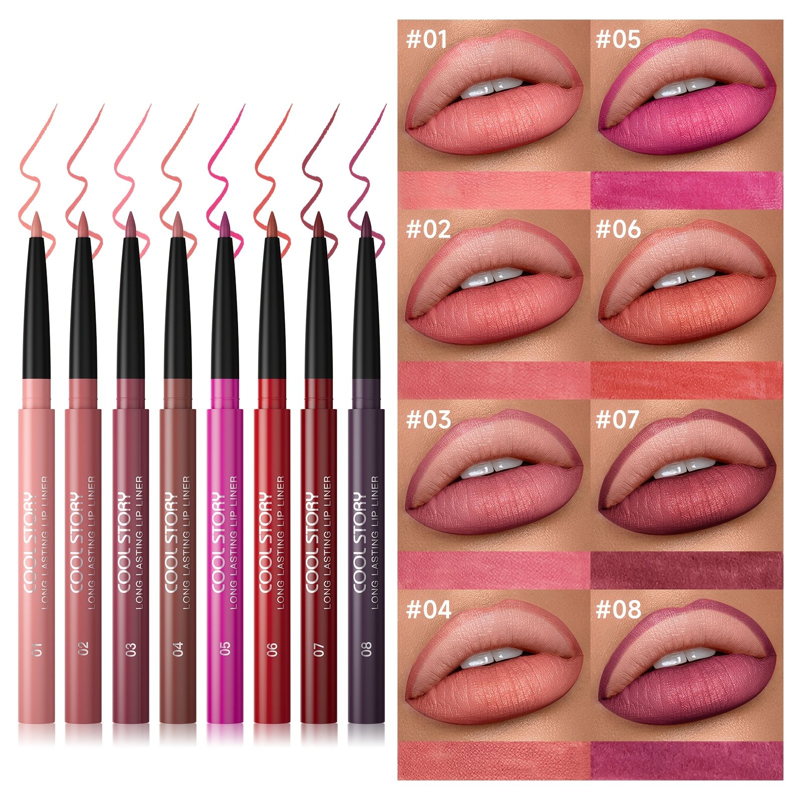 Do you dream of perfectly defined, full, and attractive lips that last all day? Give your lips the touch of magic and allure they deserve with our unique set of 8 lip liners! This meticulously designed collection is your ultimate companion for an unforgettable lip look, combining high performance with natural beauty, allowing you to highlight the best in your lips with confidence and elegance.