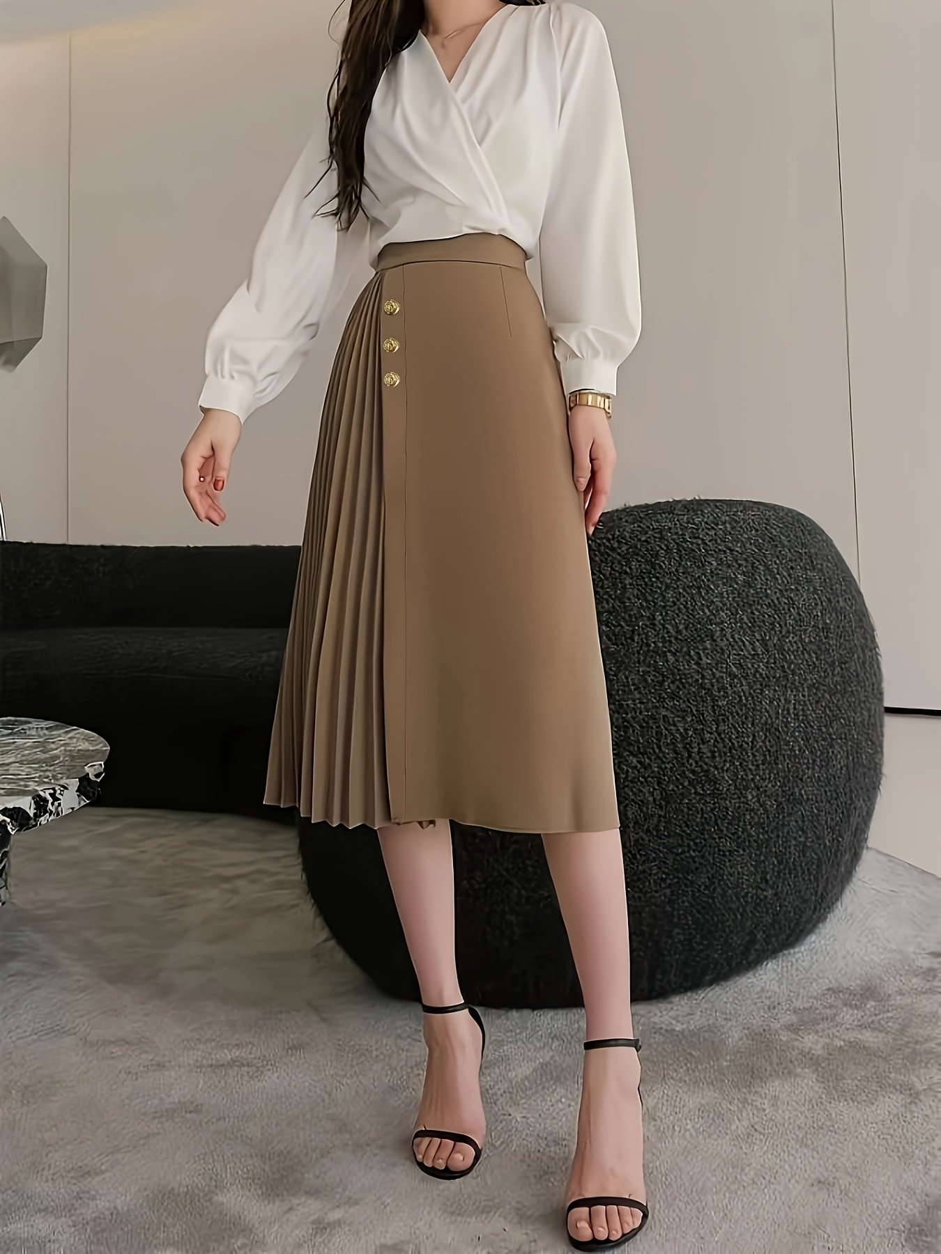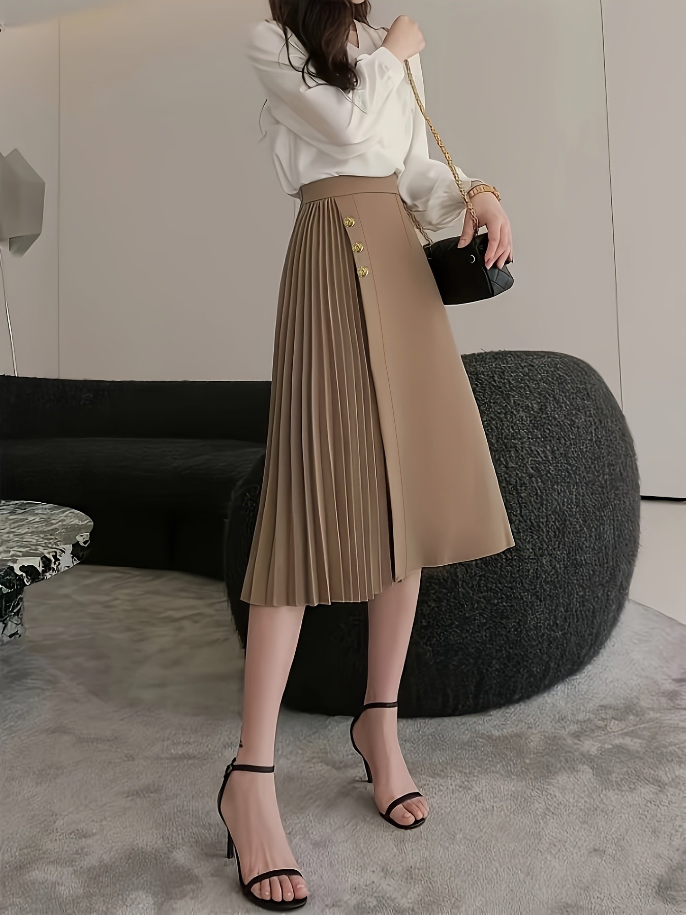 - Elegant Button Detail: A distinctive button accent adds a unique character and a luxurious finishing touch, making the skirt appear even more elegant and special.