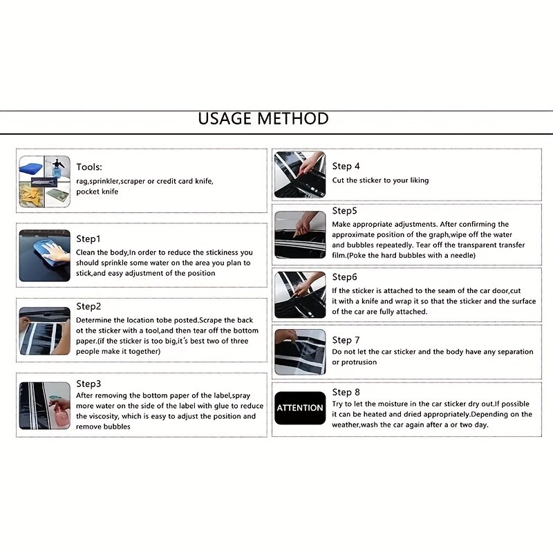 - Boundless Versatility: Ideal for your car’s hood, bumpers, doors, or any other body part. They can also be confidently applied to a wide array of surfaces like plastic, glass, metal, wood, and even ceramic, significantly expanding your customization possibilities.