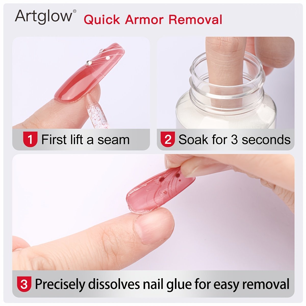 - Includes Special Remover for Easy Removal: In addition to its strong adhesion, this product comes with a special remover that ensures easy and gentle removal of nail tips and gel, without damaging your natural nails.