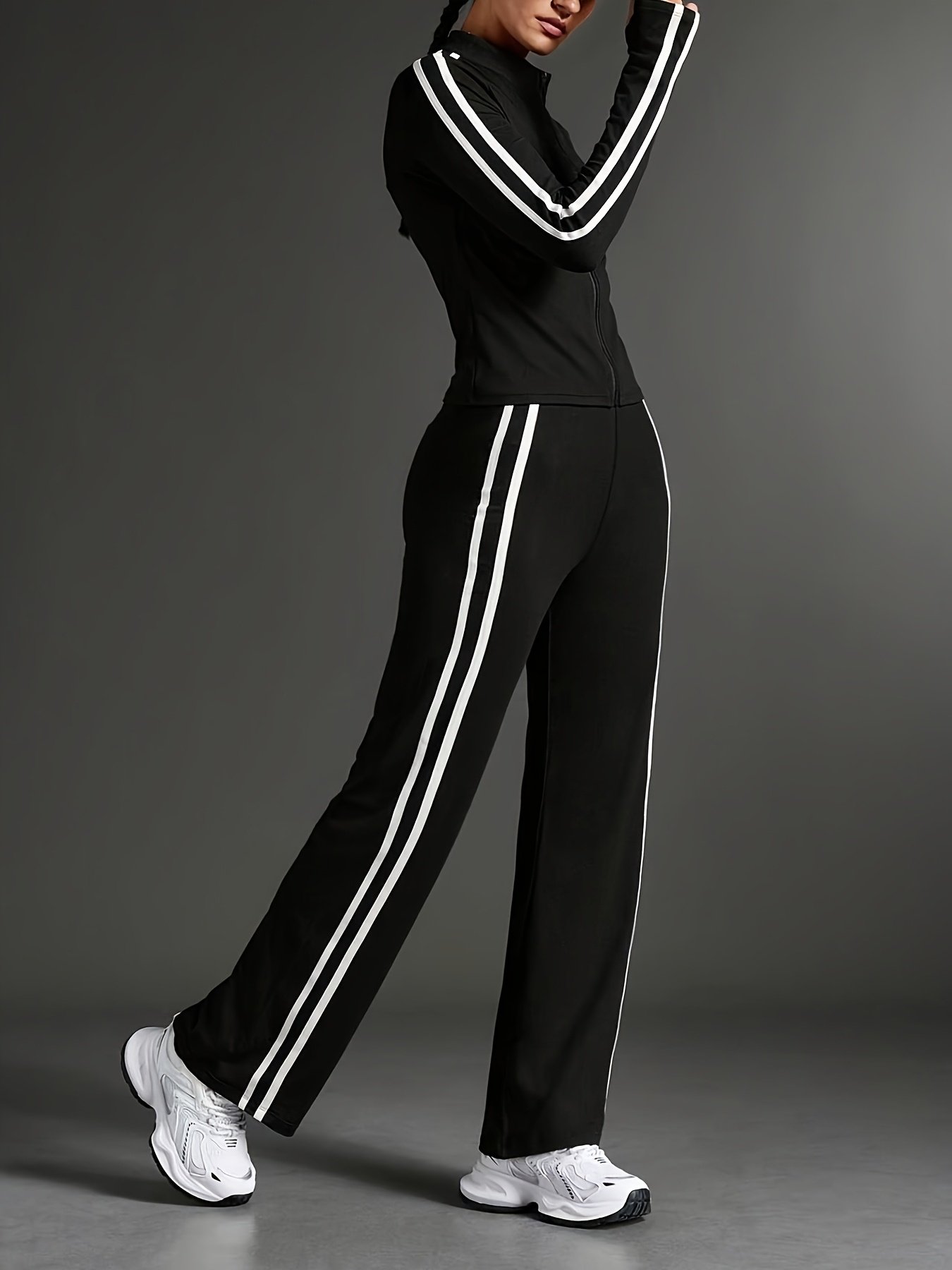Specially designed for the modern woman who combines her love for activity with her unique elegance. We present to you the perfect two-piece Athleisure Elegance Set, accompanying you every step of the way, from your morning workouts to your daily meetings, granting you absolute comfort and unparalleled style.