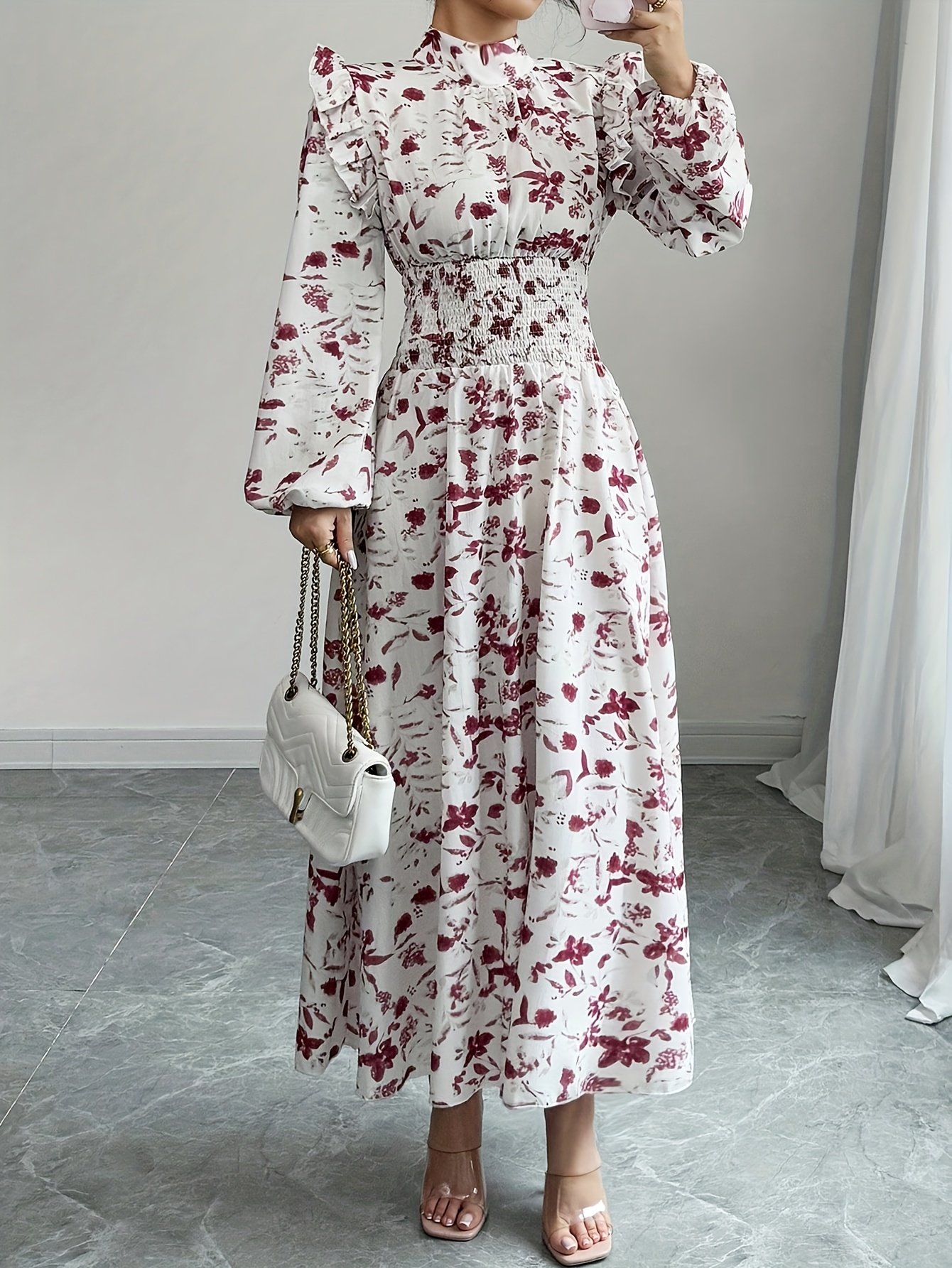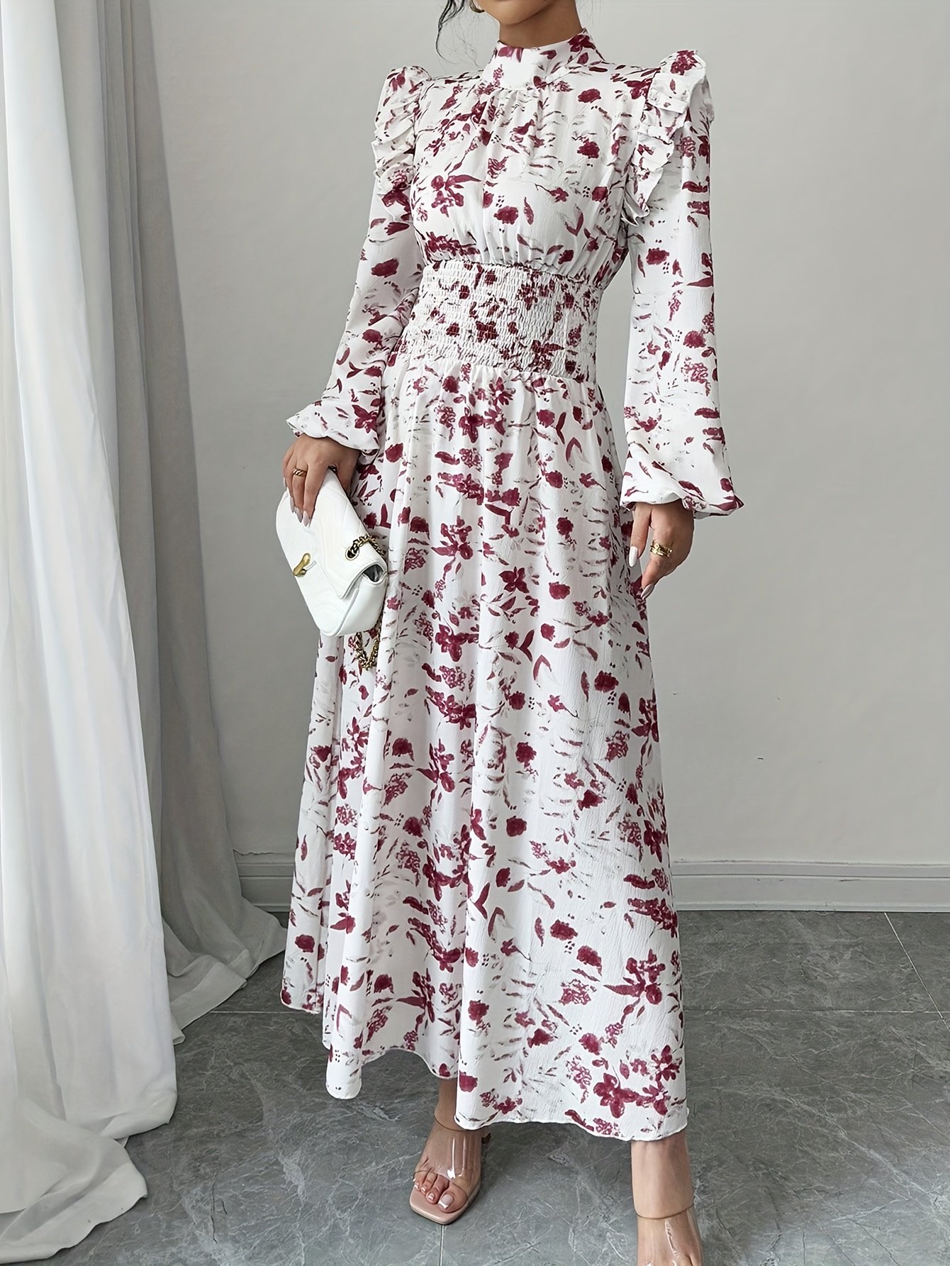 Autumn and Winter Elegance: Charming Floral Maxi Dress!