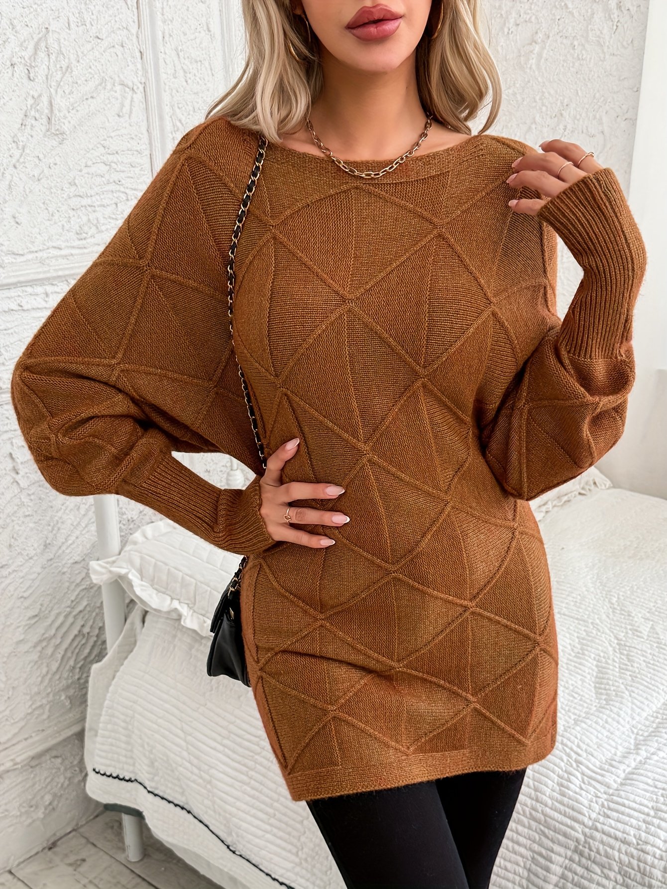 - Modern “Batwing” Elegance: A unique and distinctive design with wide (Batwing) sleeves and a classic round neck, giving you a chic casual look that is on-trend.