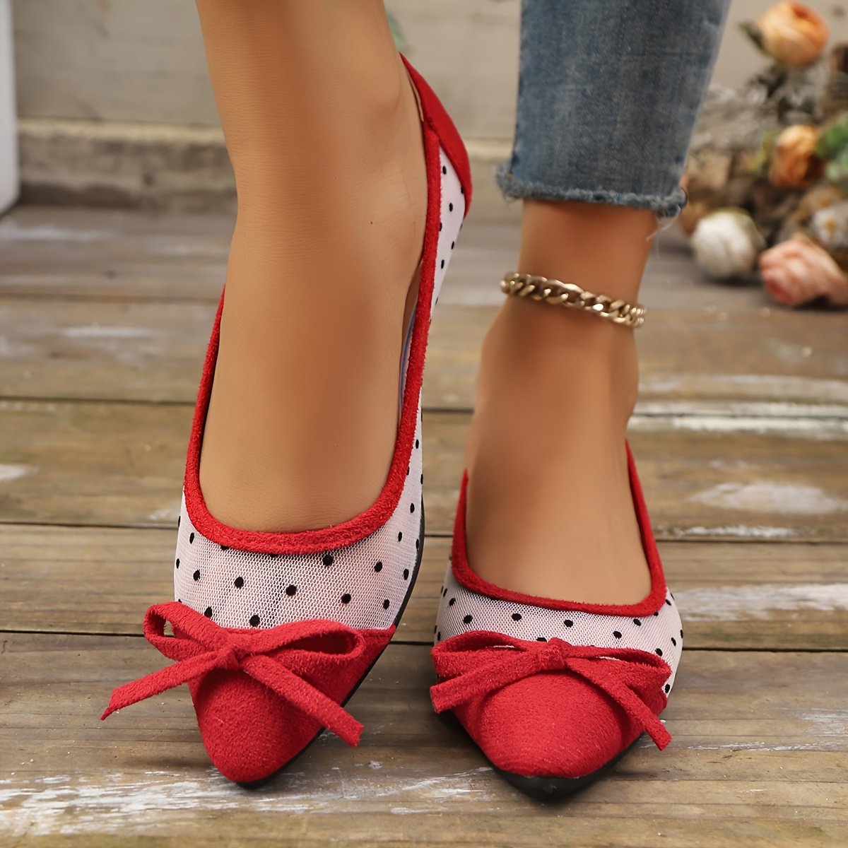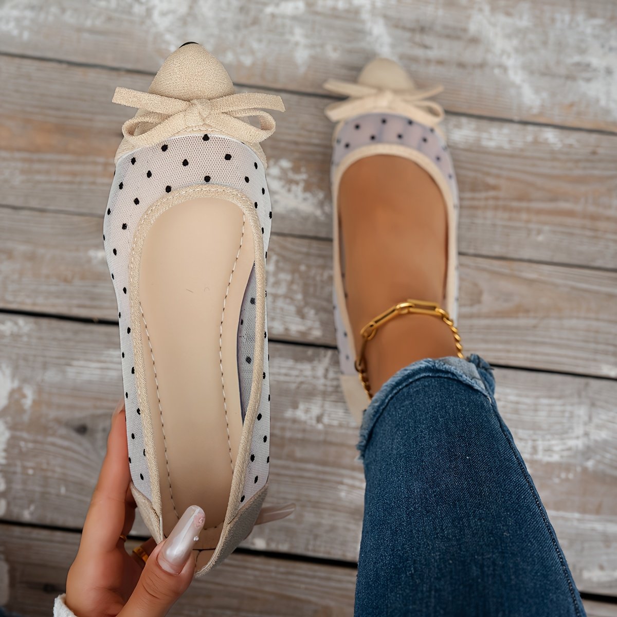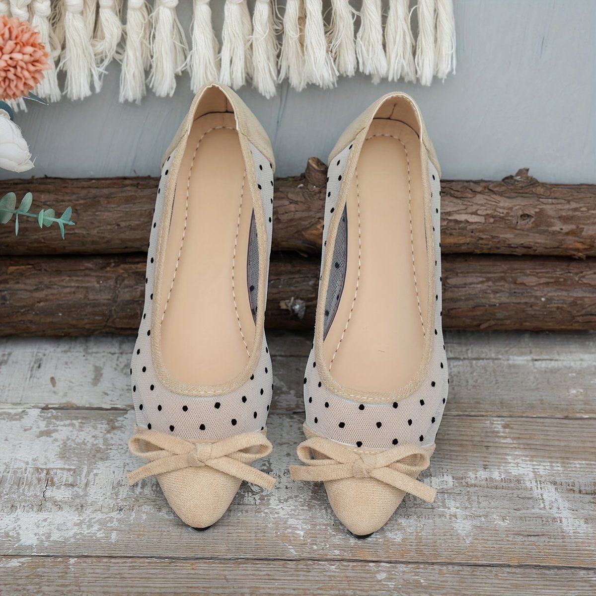 - Delicate Feminine Details: Adorned with a soft bow at the front and elegant polka-dot mesh fabric, adding a unique touch of femininity, delicacy, and distinction.