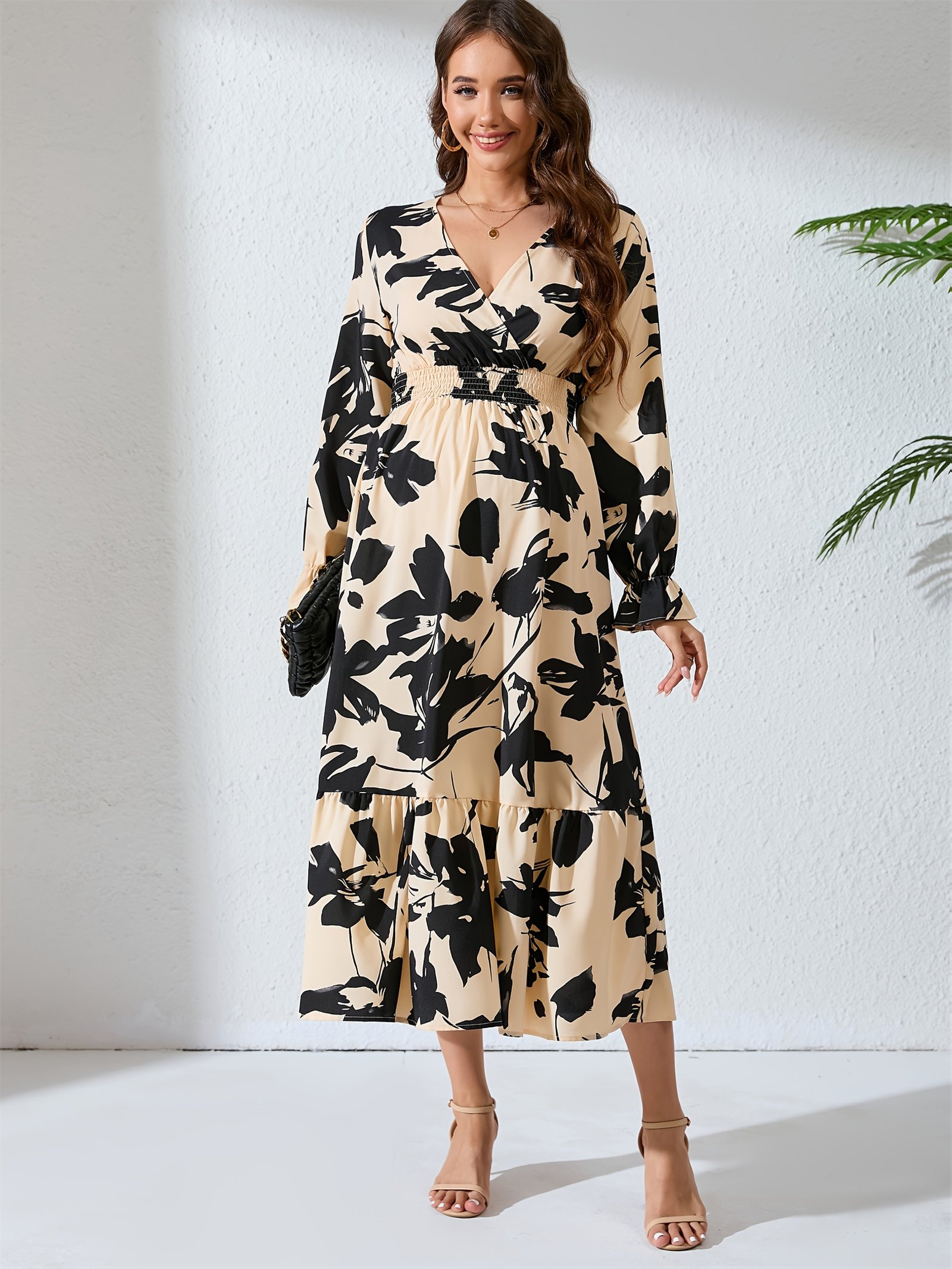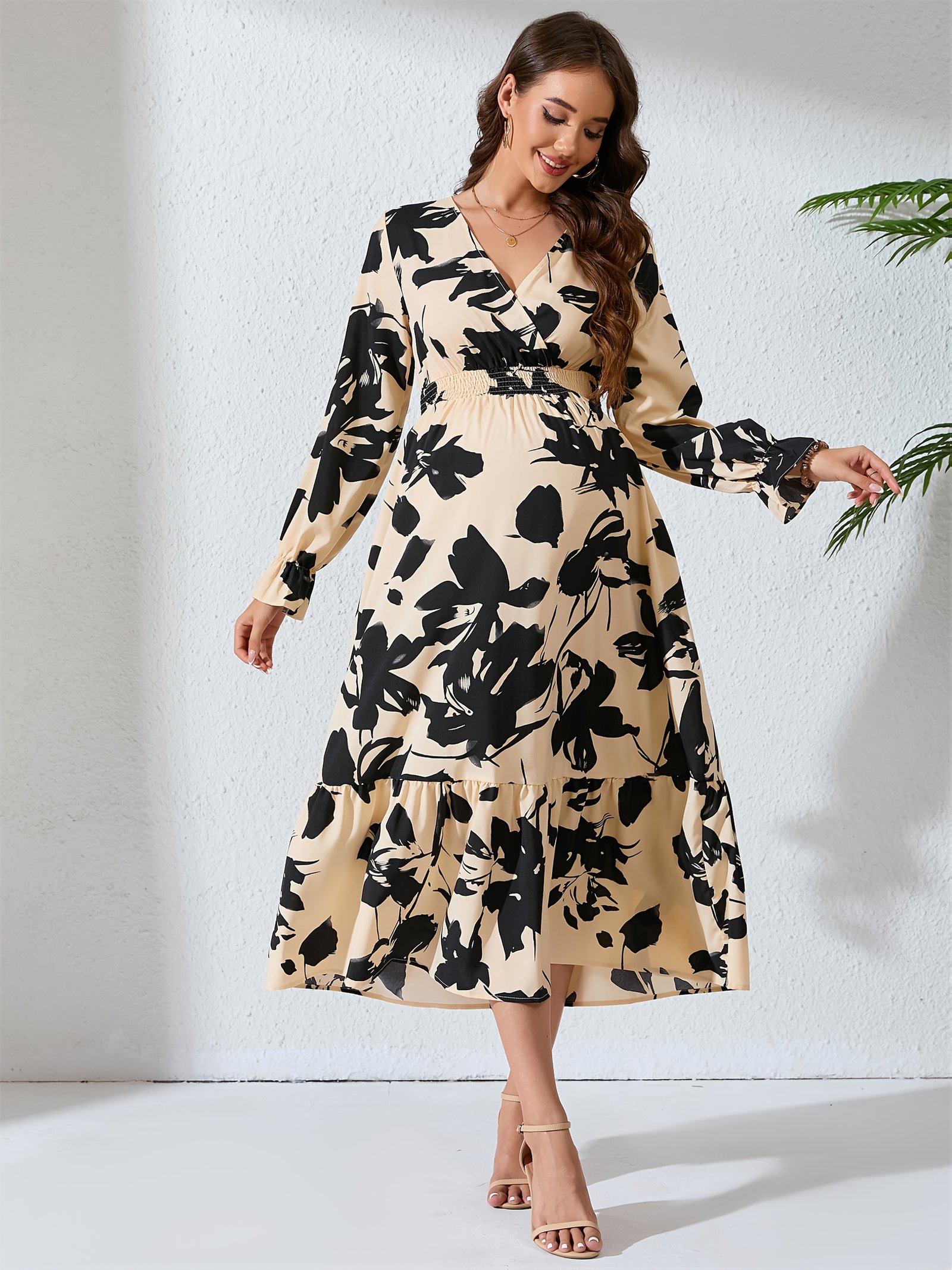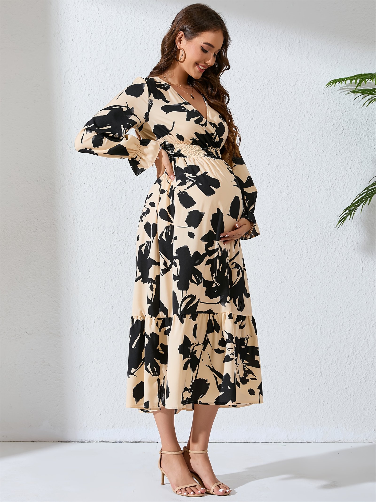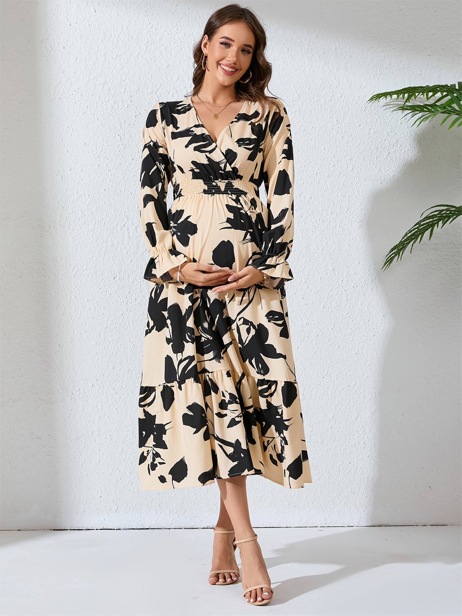 On the unique journey of motherhood, you deserve to feel beautiful, confident, and utterly comfortable. We present to you this floral maternity dress that blends modern elegance with ultimate comfort, giving you a captivating and distinctive look that accompanies you through your most beautiful days and enhances their splendor in all seasons.