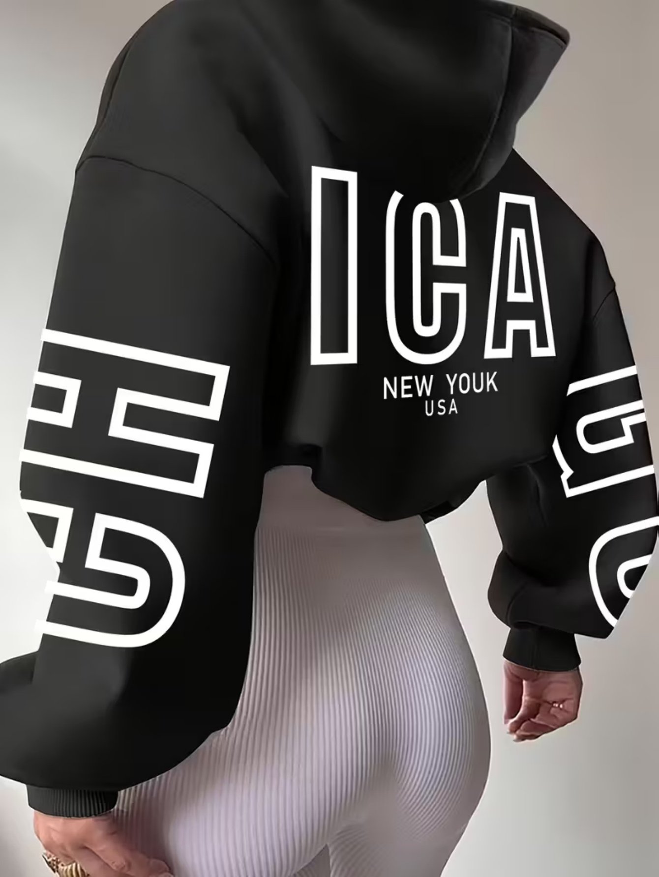 Add a modern and bold touch to your wardrobe with this stylish graphic letter hoodie that combines superior comfort and contemporary design. Perfect for every woman looking for a distinctive piece that keeps up with the latest fashion trends and suits all occasions and seasons.