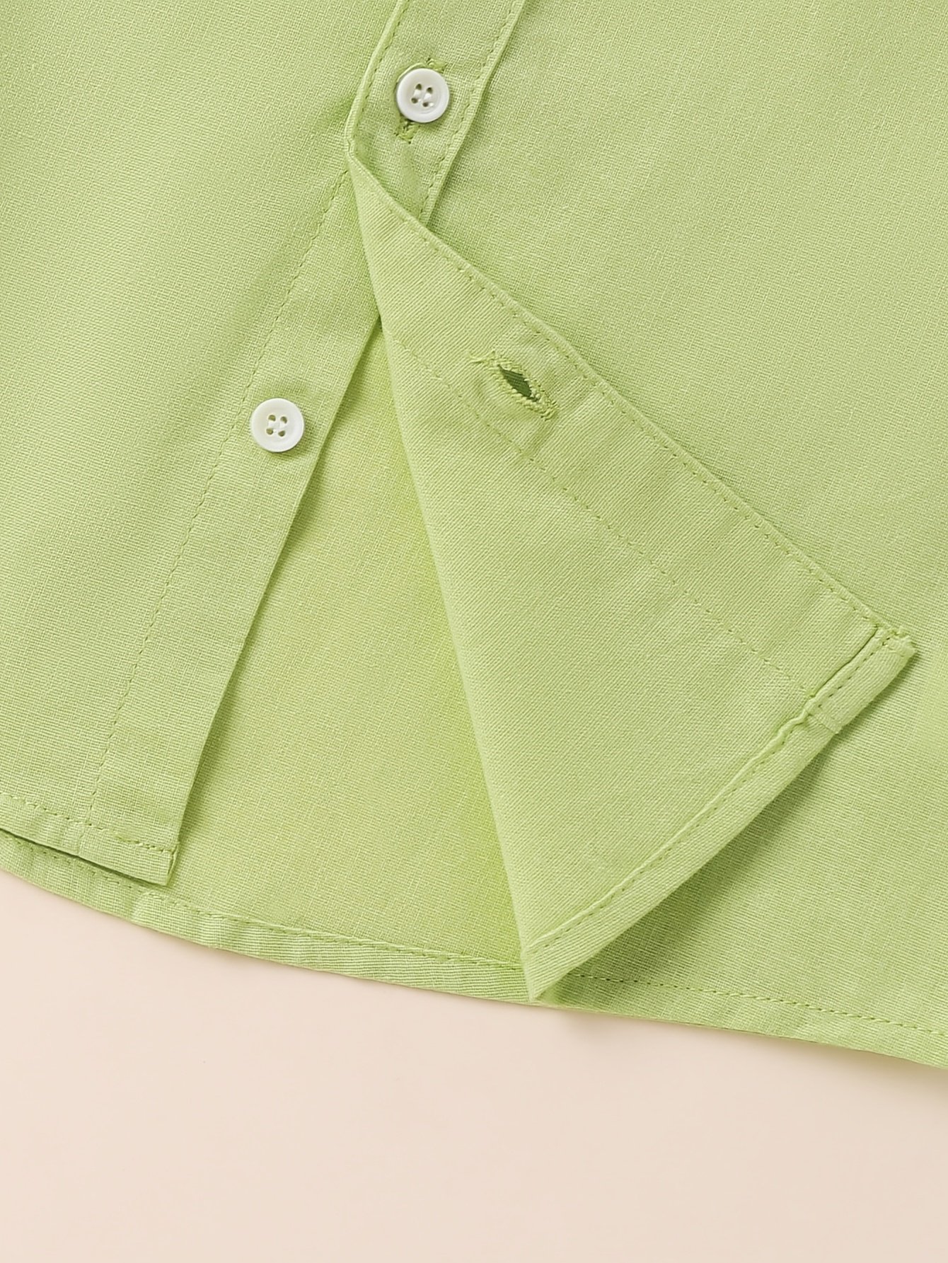 Give your little one a look that combines modernity and absolute comfort with this wonderful boys’ cotton shirt! This shirt is designed to be the perfect companion for all his adventures, from elegant parties to casual days full of play. With its attractive green color and distinctive details, your child will feel confident and stylish with every step.