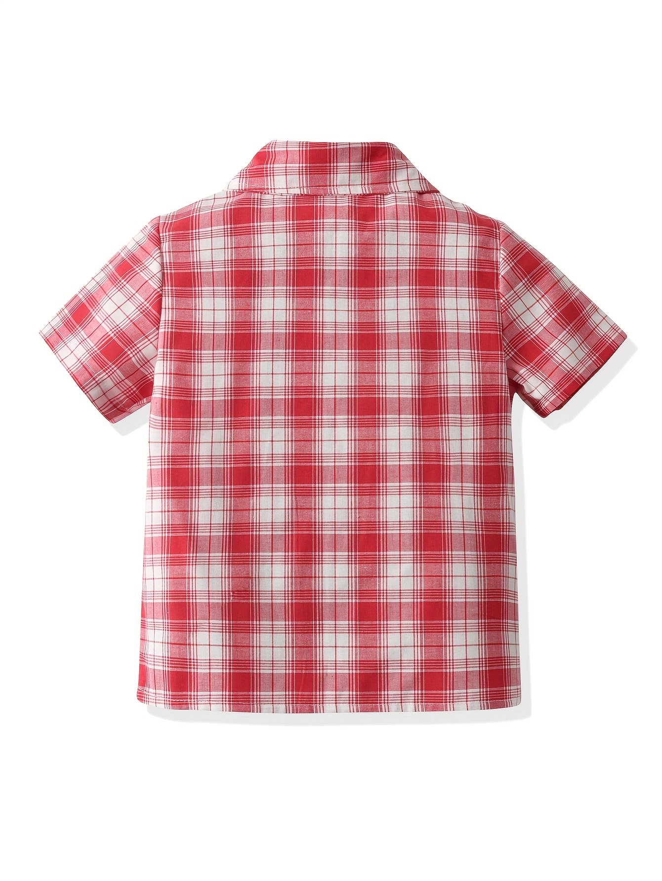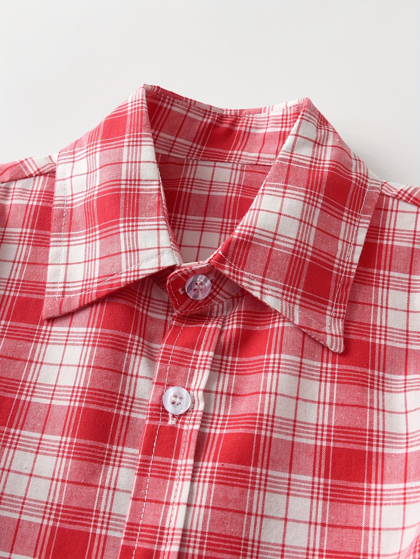 • Perfect for All Occasions: Whether for a day of play at the park or a family gathering, this red plaid shirt with its elegant lapel-style collar ensures your little one has a complete look, ready for any event.
