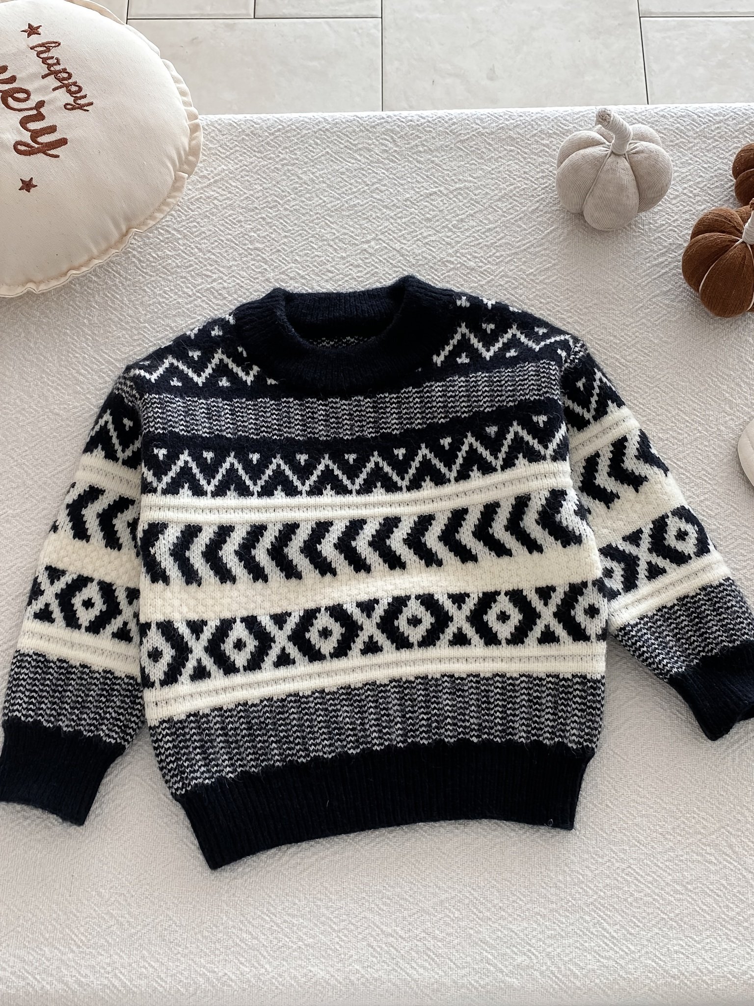 - Modern & Attractive Design: It features an elegant “Fair Isle” pattern and modern color-block design, with a classic round neck and long sleeves, giving your child a distinctive and fashionable look suitable for all casual and festive occasions.