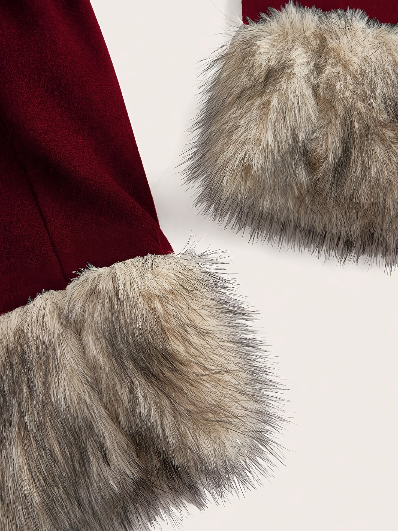 - Elegant White Faux Fur Accents: The coat is adorned with a soft and comfortable white faux fur collar and cuffs, adding a charming contrast and a touch of luxury that completes your winter look with a special sparkle.