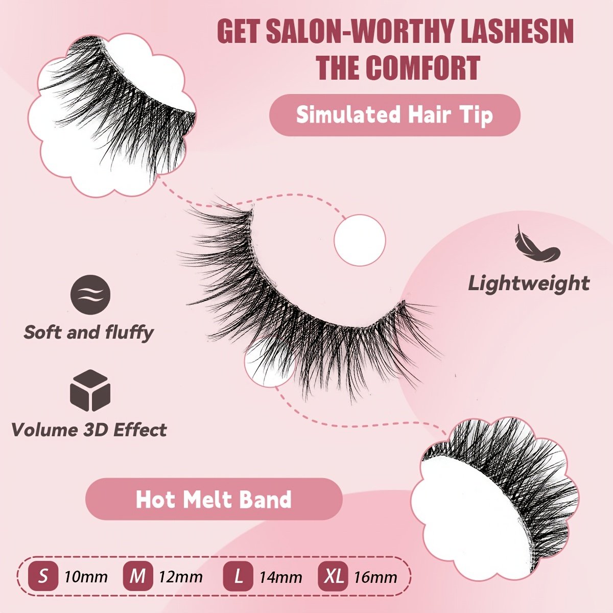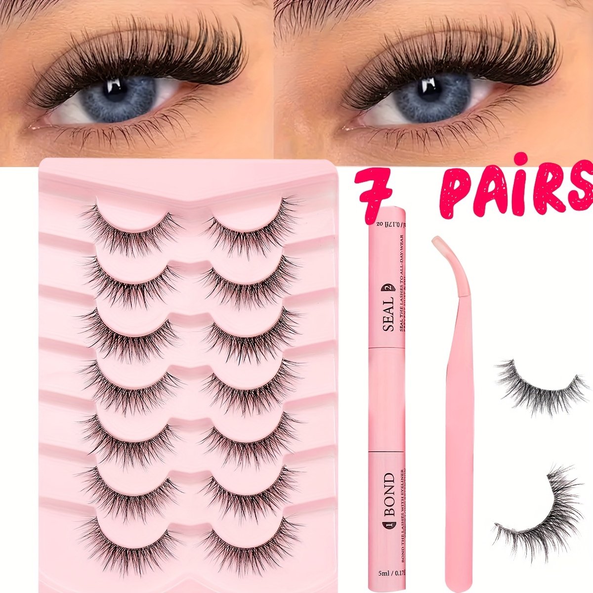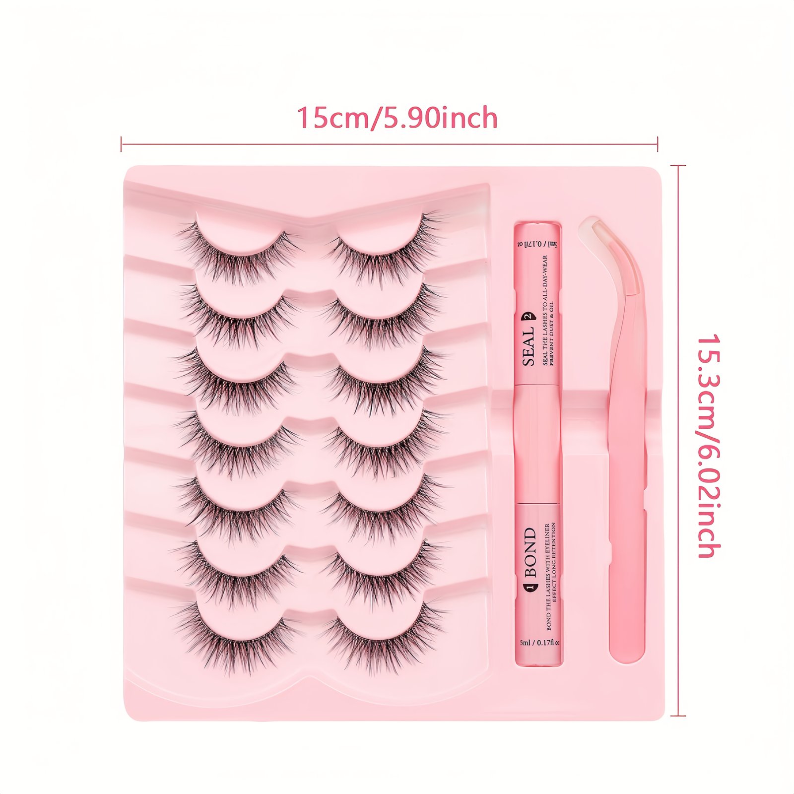 - Complete Set for Beginners: Say goodbye to guesswork! This integrated set comes with everything you need: 7 pairs of high-quality lashes, a strong, long-lasting adhesive, and special tweezers for easy and perfect application from the first time.