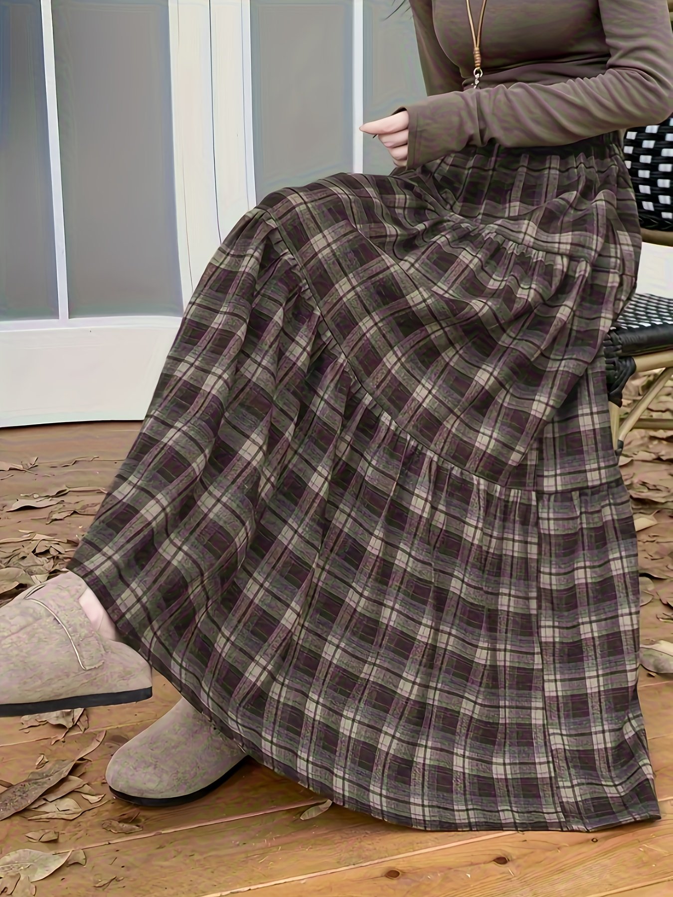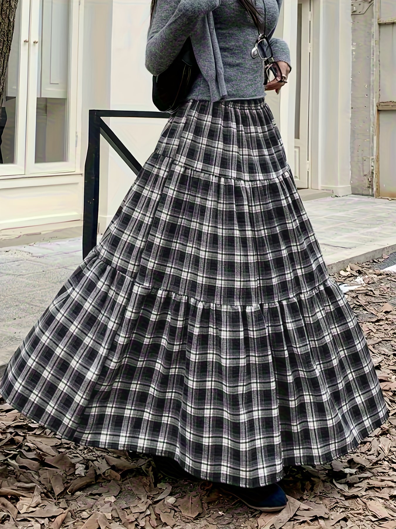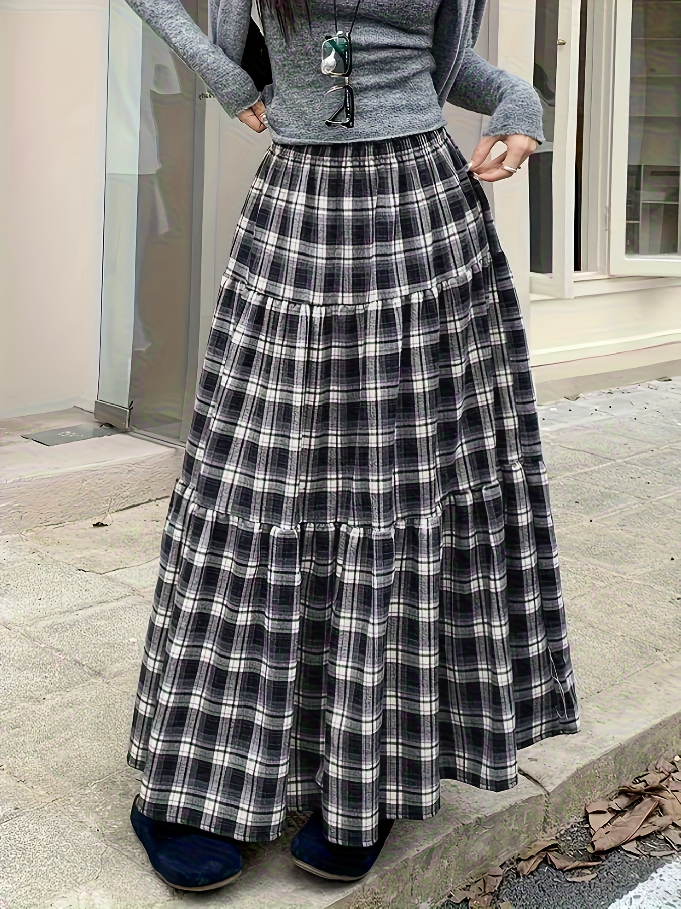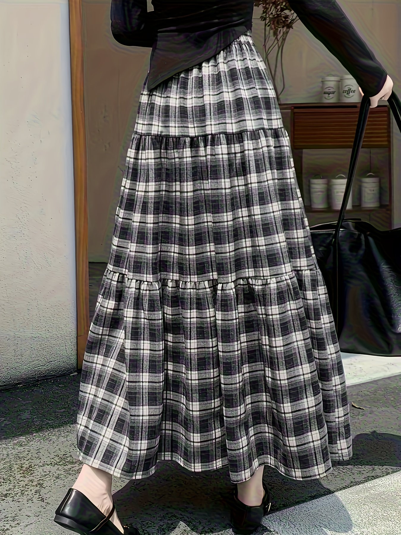 - Captivating Design with a Modern Touch: Enjoy unparalleled elegance with the classic “A-line” design and multi-layers inspired by a party cake, along with an attractive plaid pattern that adds a modern and distinctive vintage touch to your look.