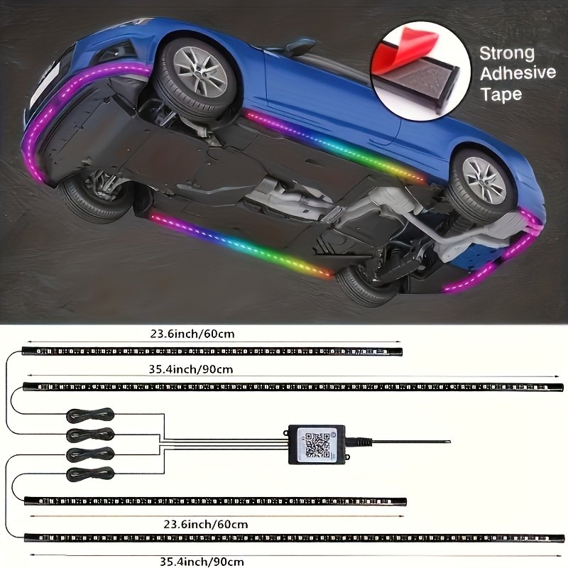 - Complete Lighting Kit: The set includes 4 high-quality LED light strips measuring 60*90 cm, providing optimal and attractive coverage for your car’s exterior or any outdoor space you wish to decorate.