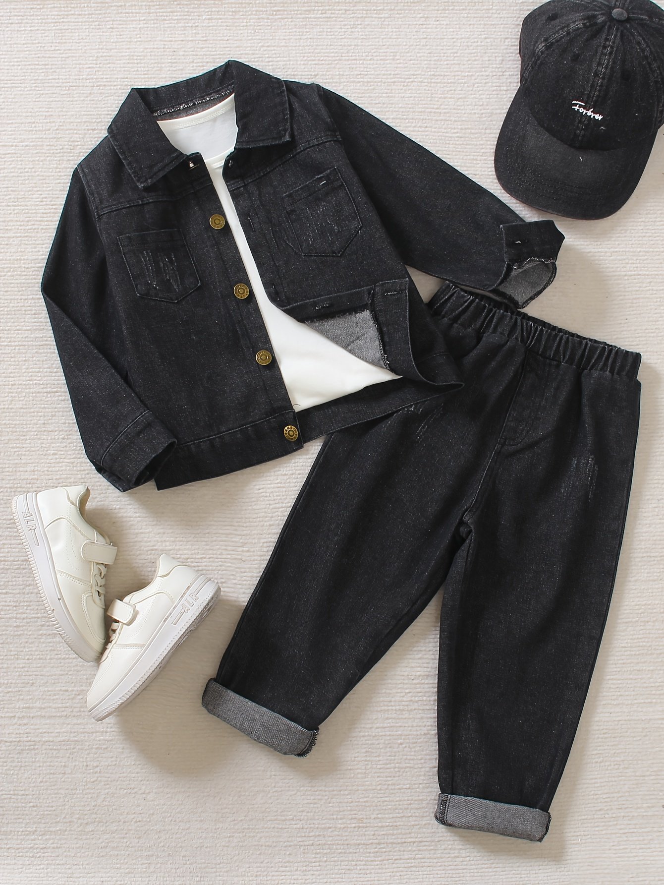 - Stylish & Attractive Denim Design: This set features a solid color and a casual design inspired by timeless denim elegance, giving your little one an attractive and fashion-forward look, perfect for daily wear and outdoor excursions.