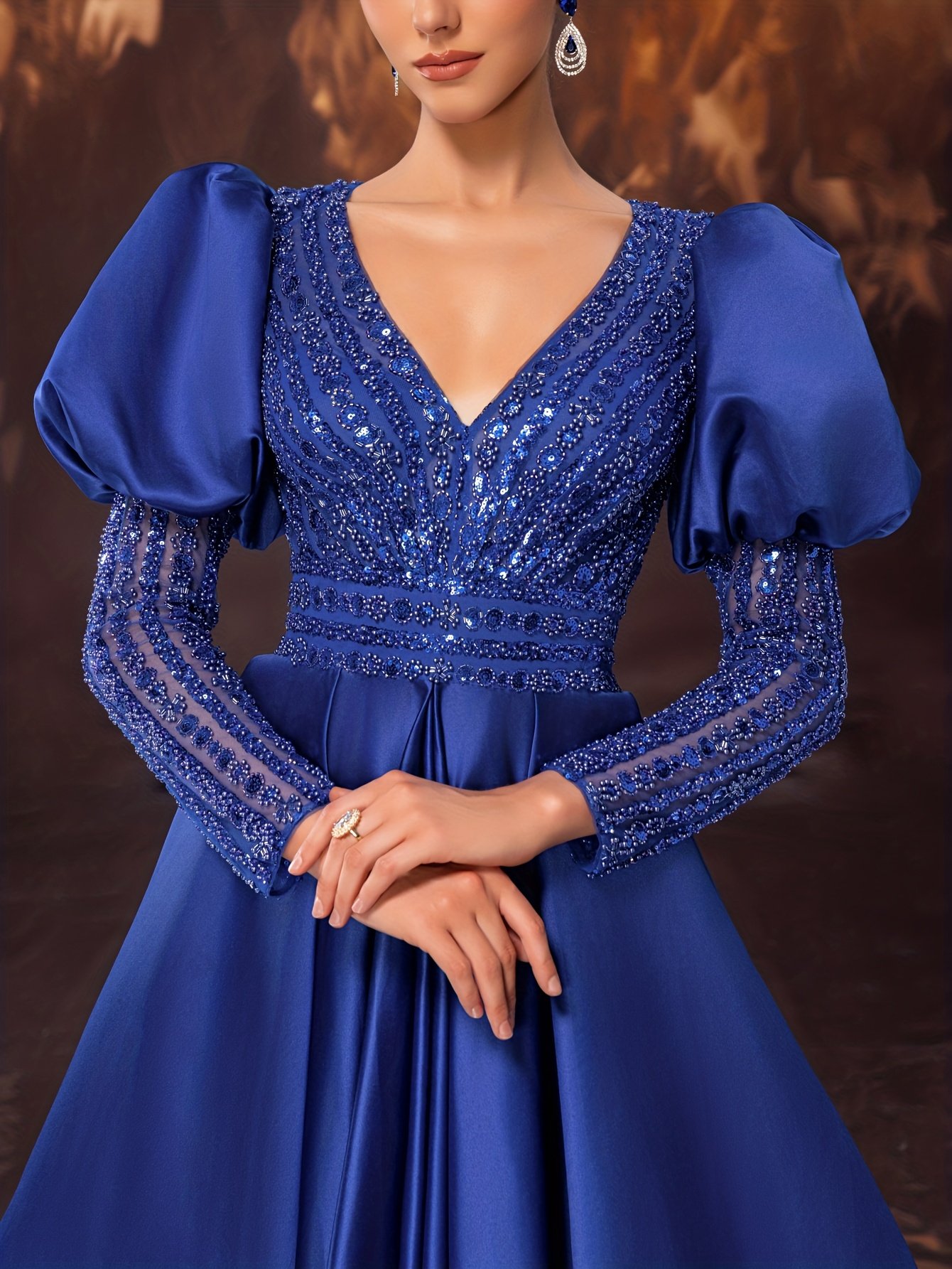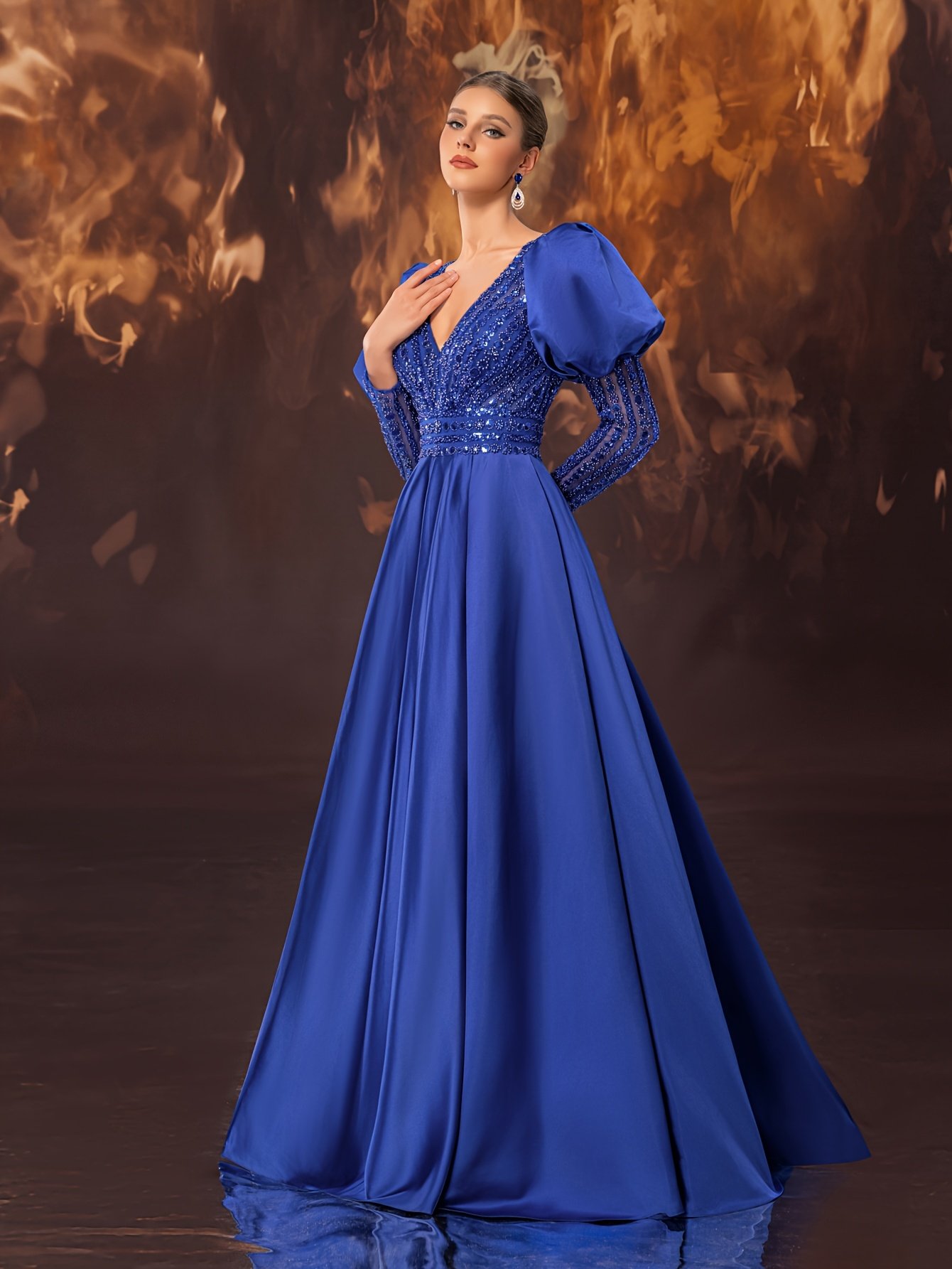 - Enchanting Princess Sleeves: Long, puffed sleeves add a touch of luxury and sophistication, with integrated bust padding to provide full support and confidence throughout the evening.