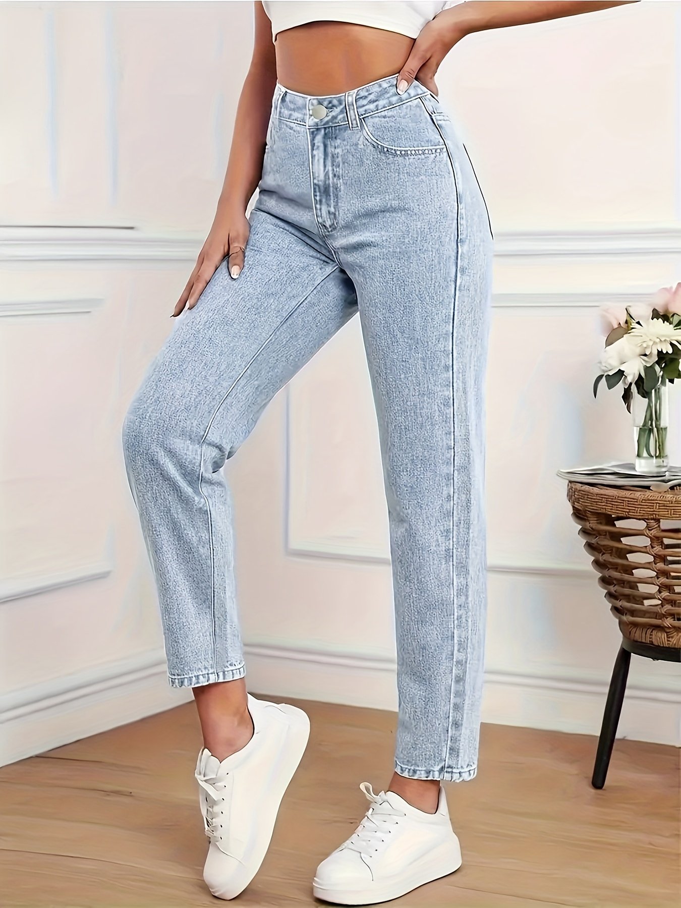 - Modern Design with a Classic Touch: Features a trendy ankle-length (Cropped) cut that highlights the beauty of your legs, and washed details with a vintage distressed touch that adds a unique and attractive character. The mid-waist design and comfortable, non-transparent fit give you confidence and elegance with every step.