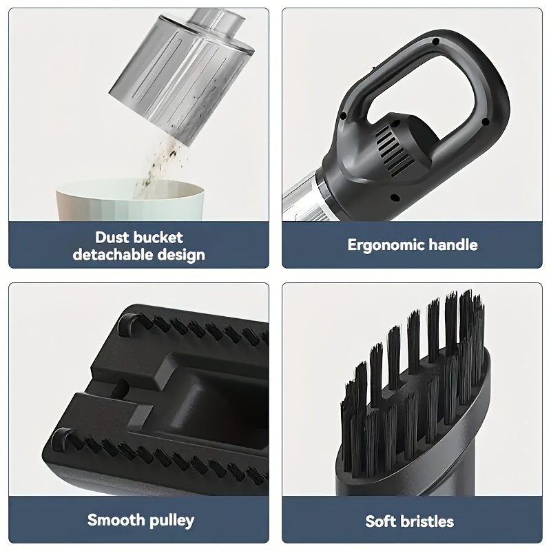 Tired of sudden messes appearing in your home or car? Are you looking for a quick and effective solution to keep your surroundings clean without the hassle of heavy cords? Say goodbye to scattered dust and crumbs with the portable cordless vacuum cleaner, your perfect companion for instant, powerful cleaning wherever you are! Designed to provide an unparalleled cleaning experience, this vacuum combines superior performance with maximum flexibility to make your life easier and cleaner.