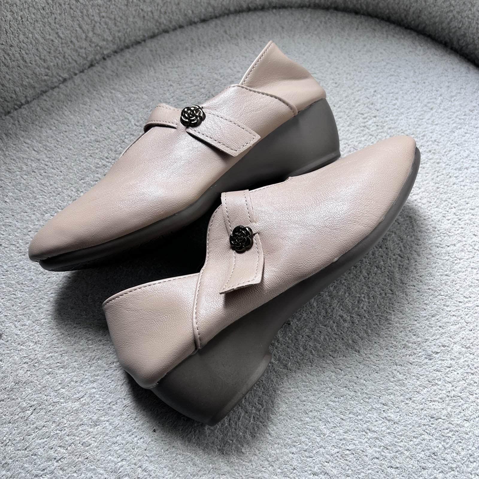 - Modern Versatile Style: It features a light color and a simple, elegant design with a solid pattern and a regular toe, making it the perfect choice to pair with various outfits, whether you’re heading to work, shopping, or meeting friends.
