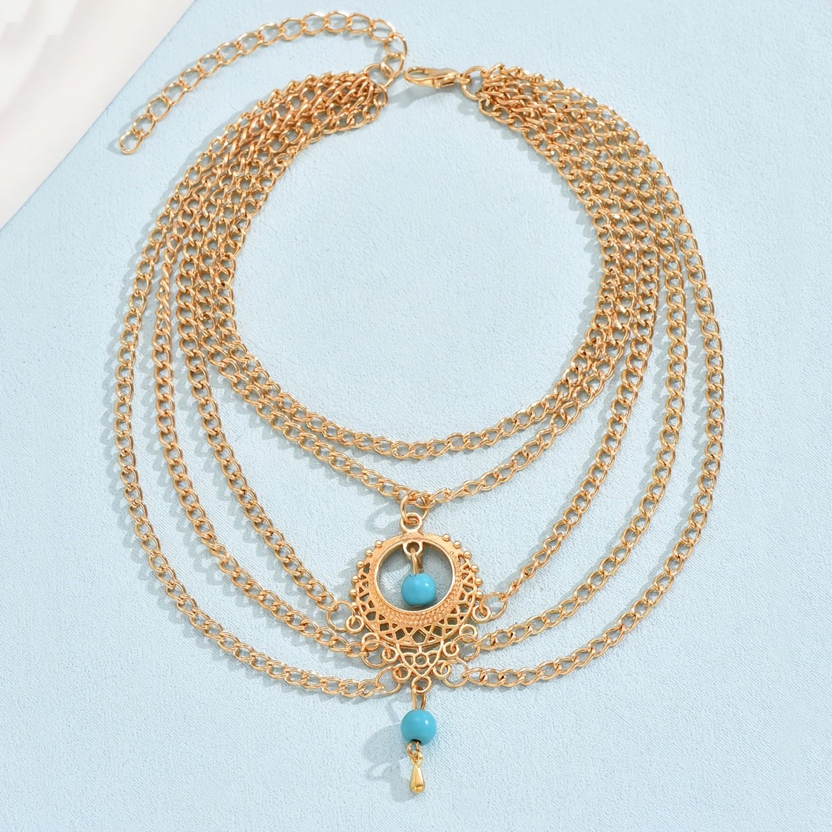 Turn heads and let your feet speak volumes about your unique elegance with the Teardrop Turquoise Anklet, an artistic masterpiece that blends the allure of the past with the vibrancy of the present. This anklet isn’t just an accessory; it’s a statement of your refined style and your passion for enduring vintage beauty.