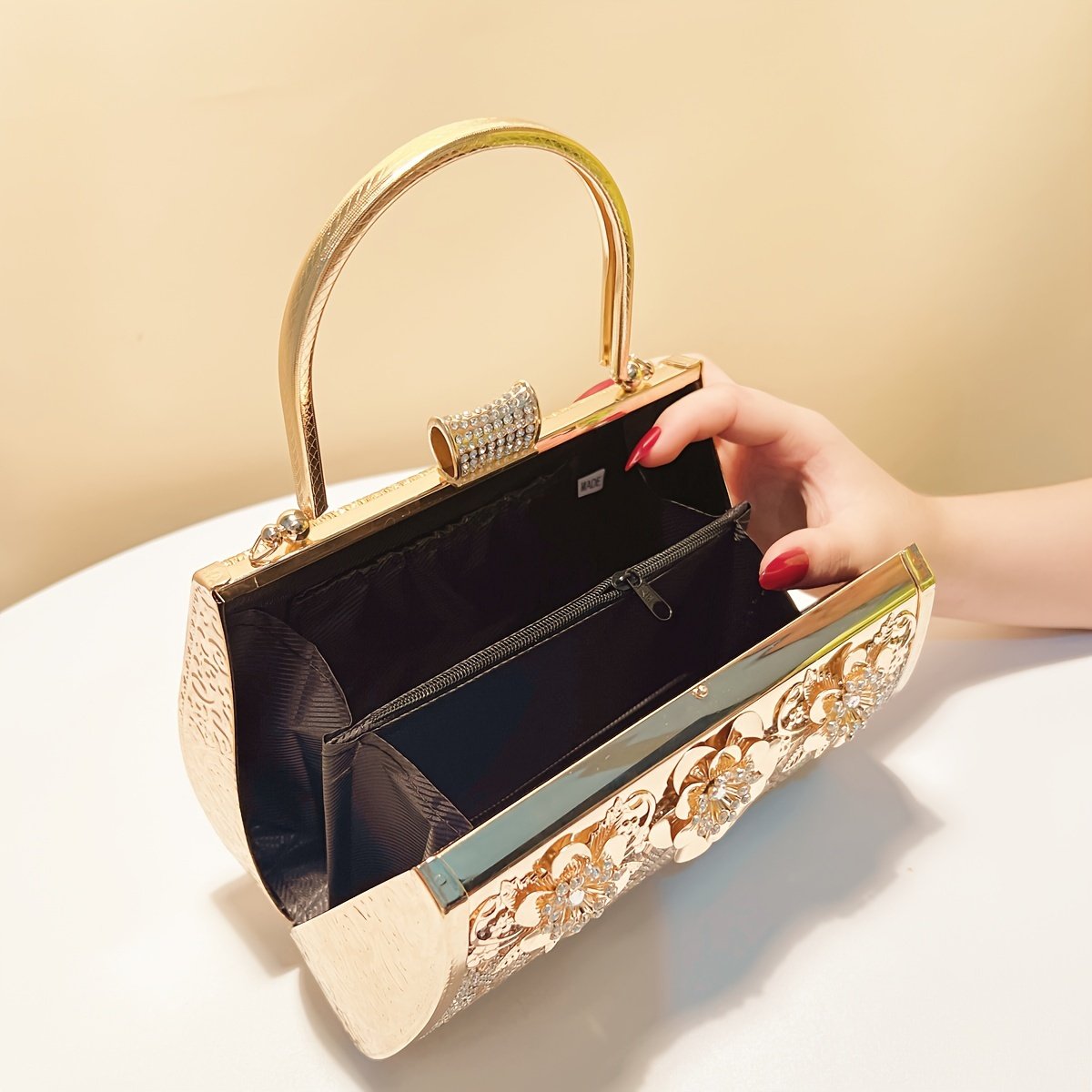 Get ready to shine with unparalleled brilliance with this luxurious clutch evening bag, specially designed to be your perfect companion for the most wonderful evenings and special occasions. This bag embodies absolute elegance and sophisticated luxury, where every piece tells a story of sparkle and charm. Make every one of your looks distinctive and enchanting, and let this golden masterpiece add a touch of magic to your presence.