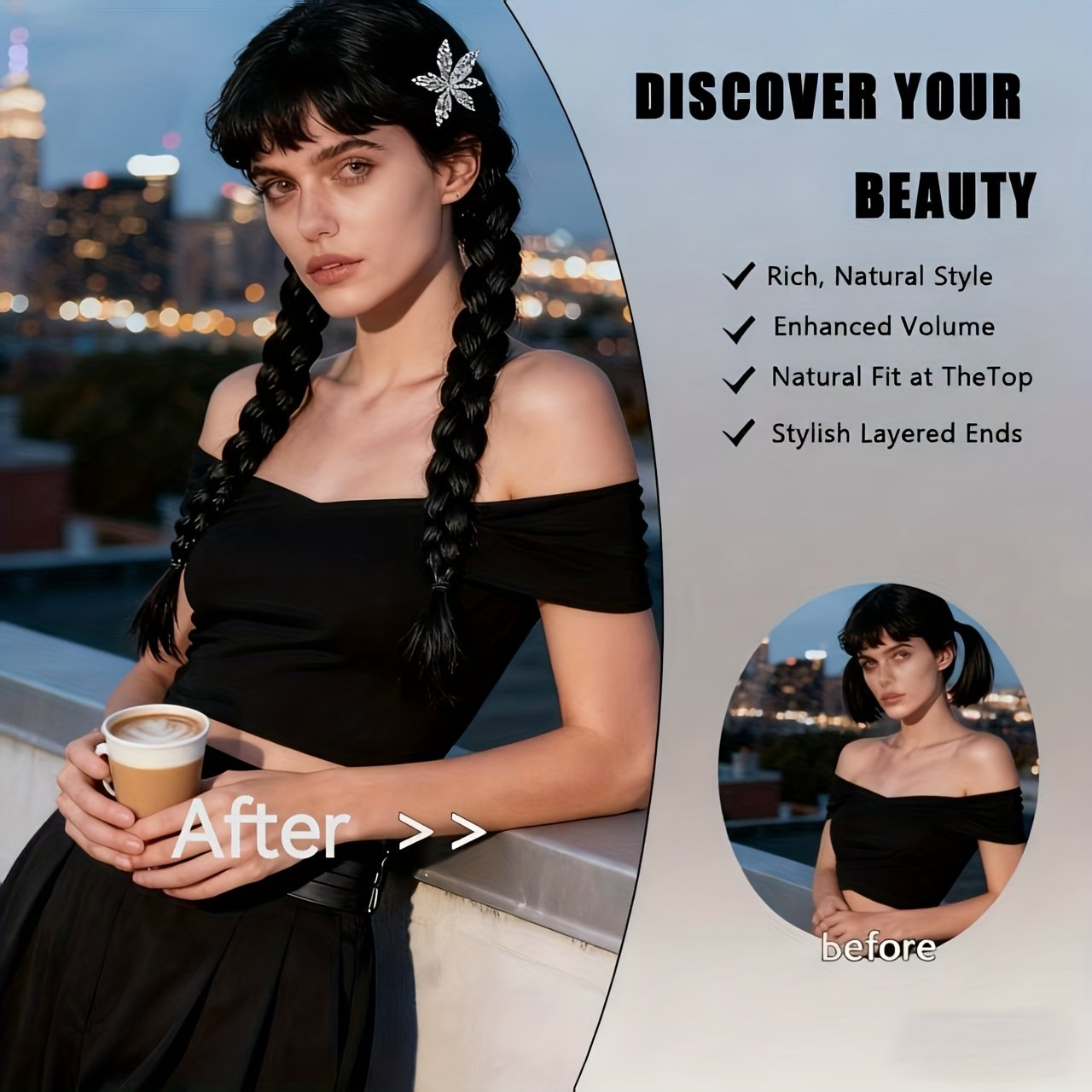 Do you dream of a captivating and unique look every day without effort? Say goodbye to long hours in front of the mirror! We offer you the perfect solution for lasting beauty and unparalleled ease. With this specially designed ponytail extension, you’ll achieve a charming and confident look in an instant, whether for your daily routine or special occasions.