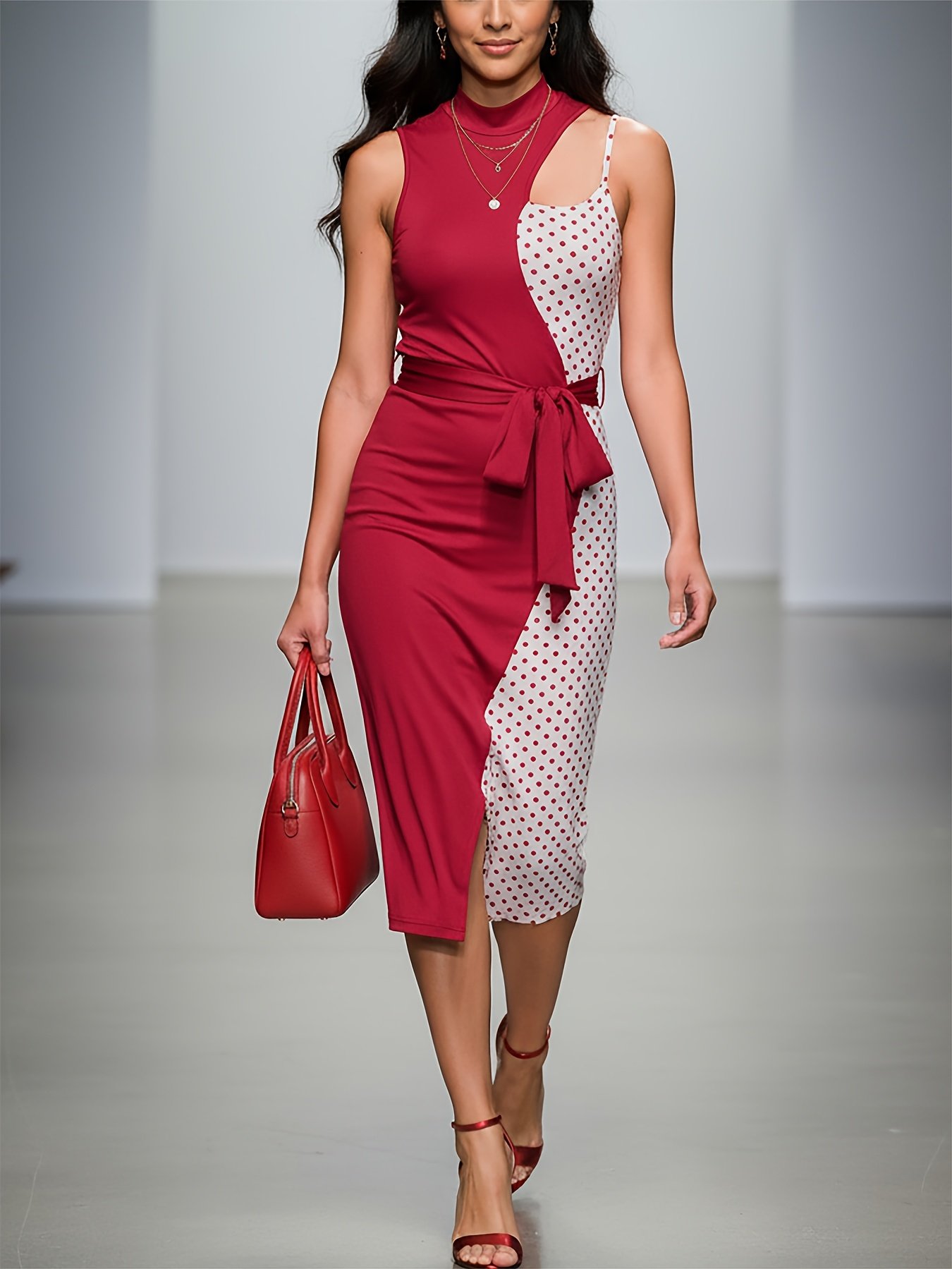 - Elegant and Alluring Design: A fitted dress that highlights your figure, featuring a classic polka dot pattern in vibrant red, giving you a modern and lively look for this spring and summer.