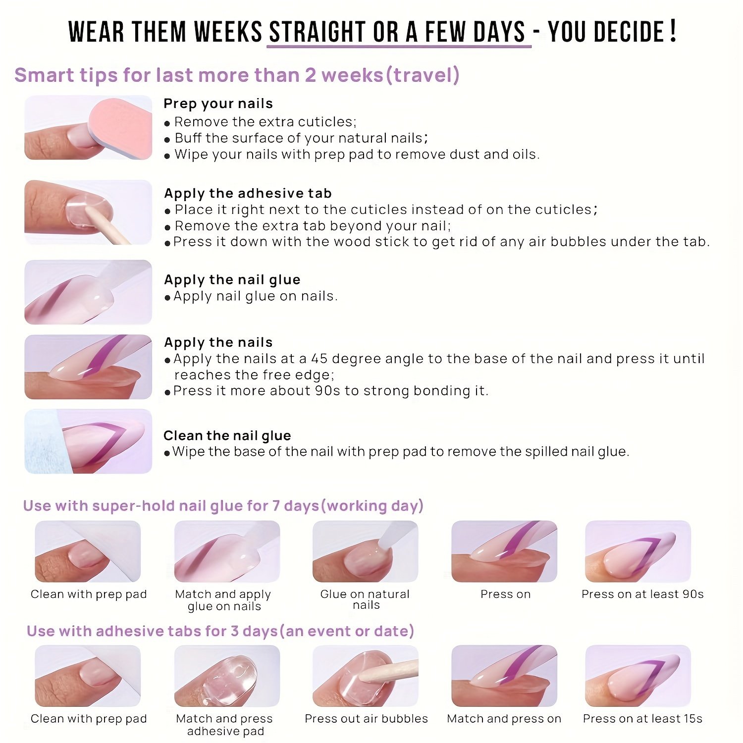 - Effortless Instant Application: Say goodbye to waiting for polish to dry! Apply them easily and quickly in minutes, achieving perfect nails ready to go without any effort or mess.