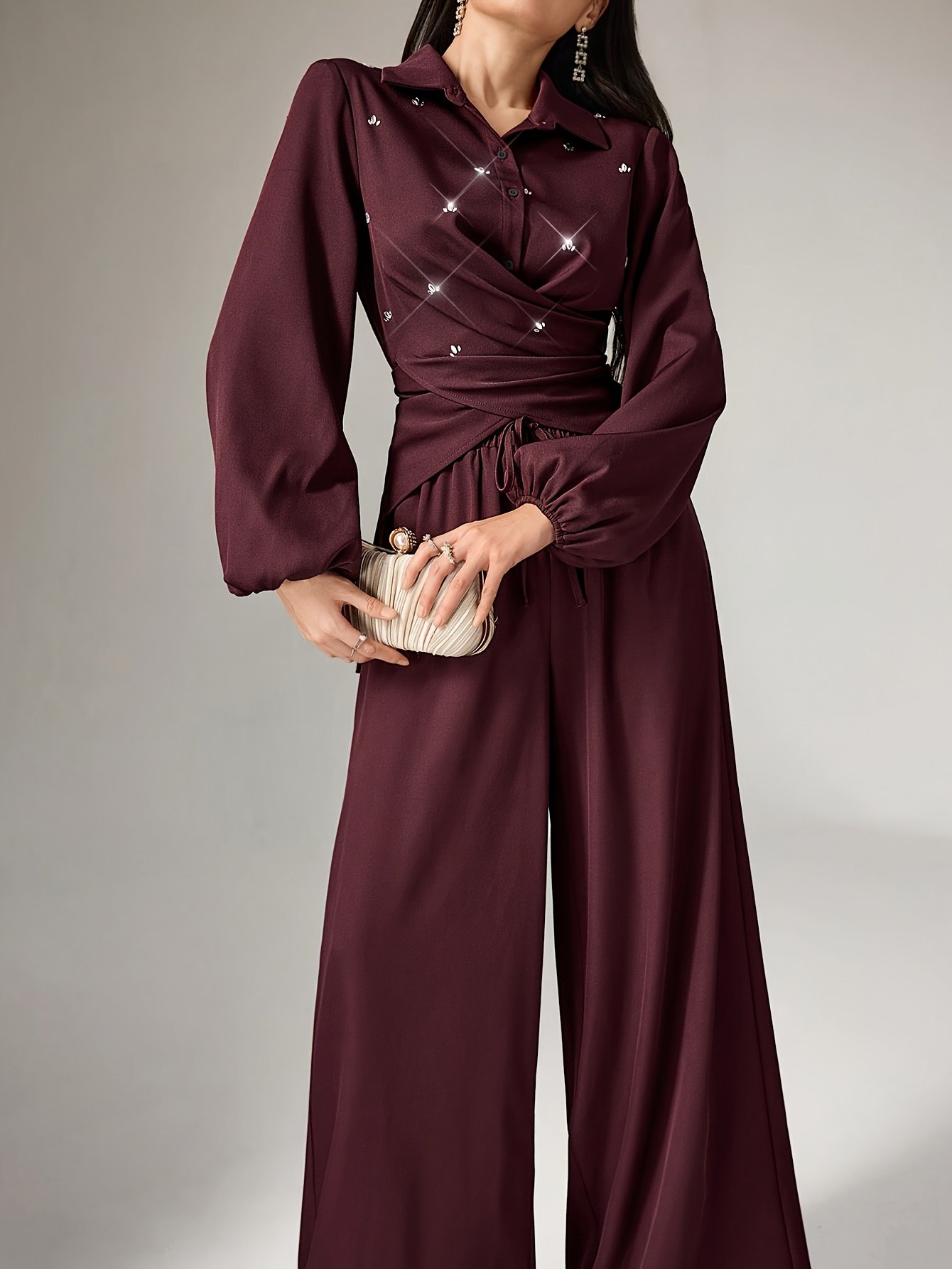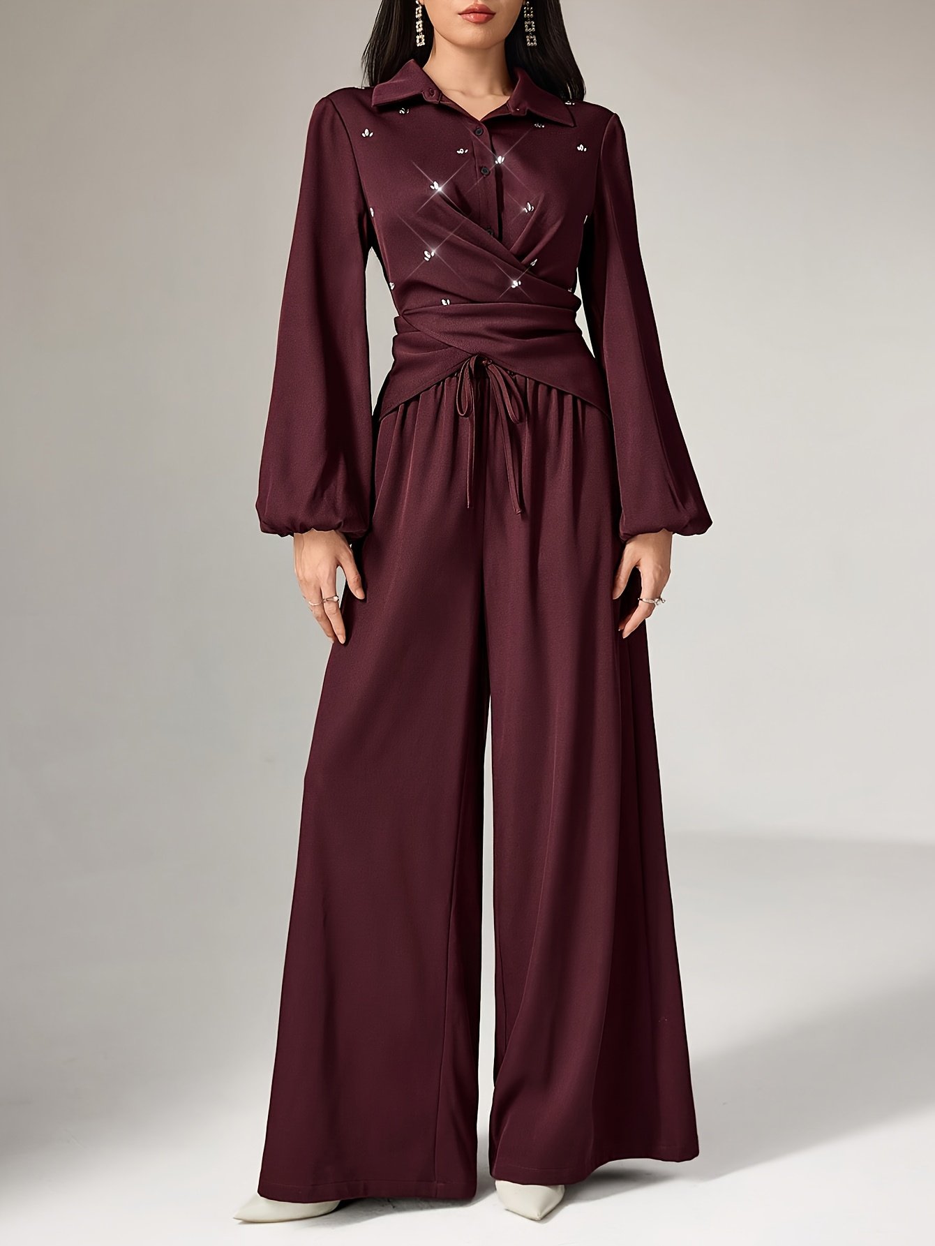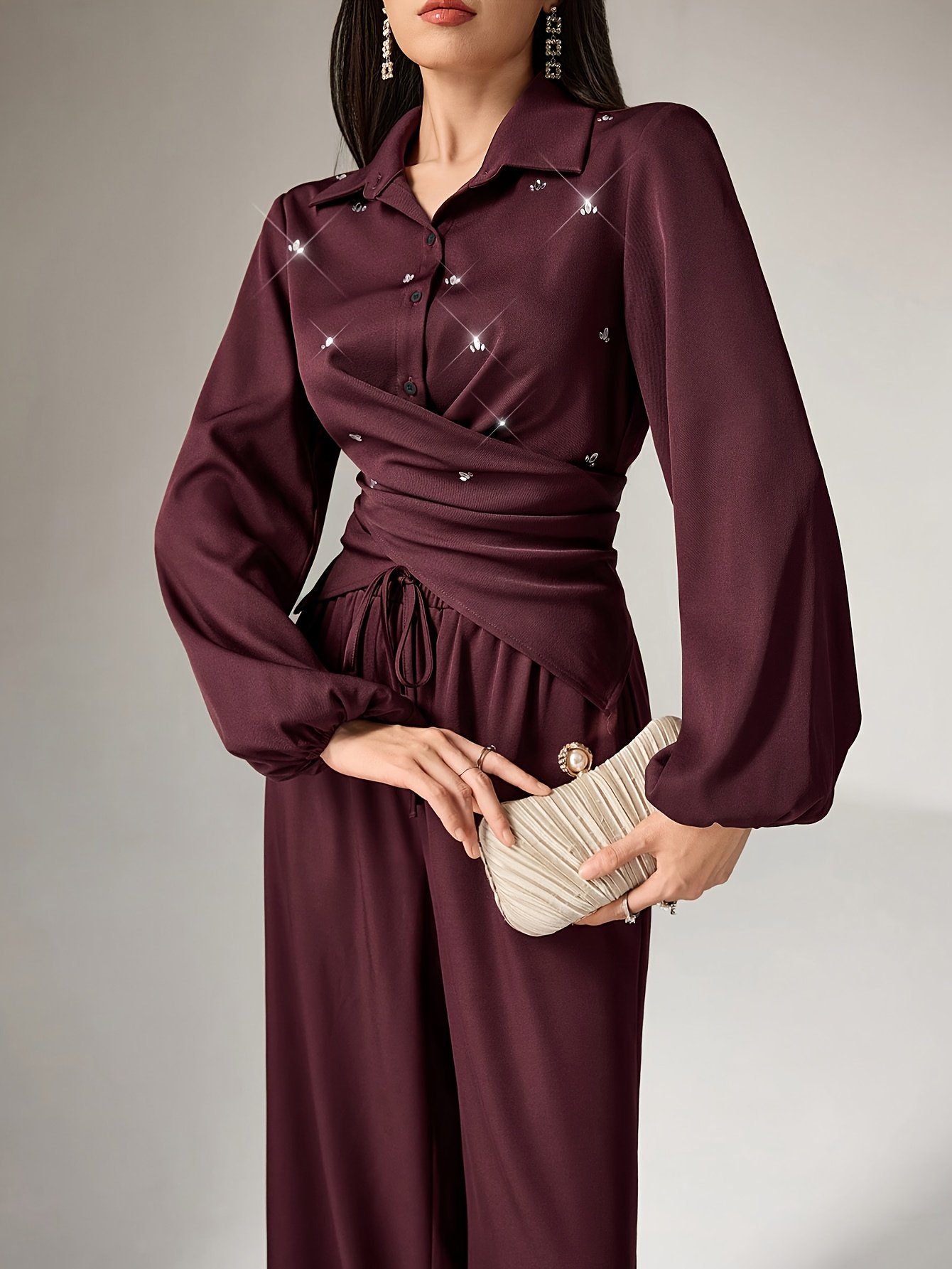 Discover the pinnacle of elegance and sophistication with this luxurious shirt and trousers set, specially designed for the modern woman who seeks a complete look that combines luxury and comfort. This unique ensemble gives you unparalleled radiance for all your occasions, from day to evening, ensuring you remain the center of attention with your refined and distinctive style.