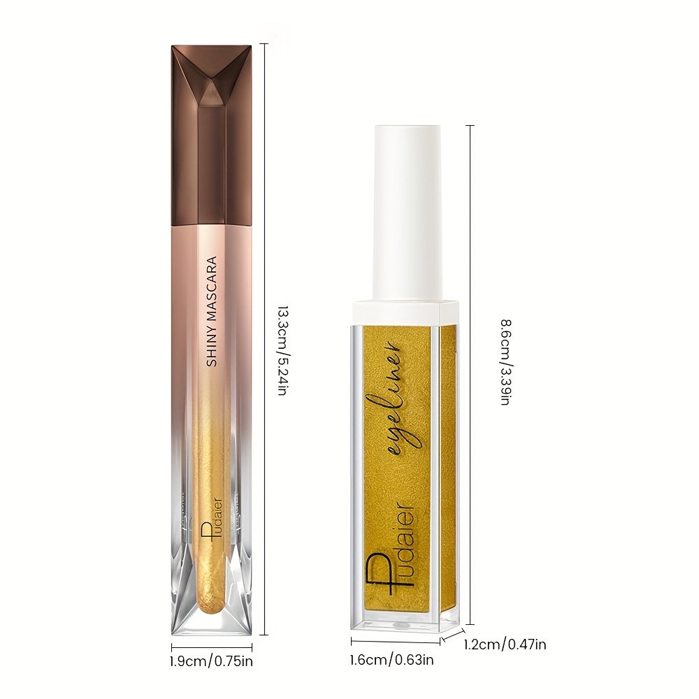 Do you dream of captivating eyes that turn heads, and a makeup look that lasts for long hours, no matter the circumstances? We offer you the perfect solution to achieve this dream: The Luxurious Diamond Mascara and Metallic Eyeliner Set. This enchanting duo set is specially designed to give your lashes volume and density with a dazzling diamond sparkle, and to define your eyes with a bold and innovative metallic touch. Get ready to shine with irresistible beauty on every occasion, from daily encounters to grand holiday celebrations!