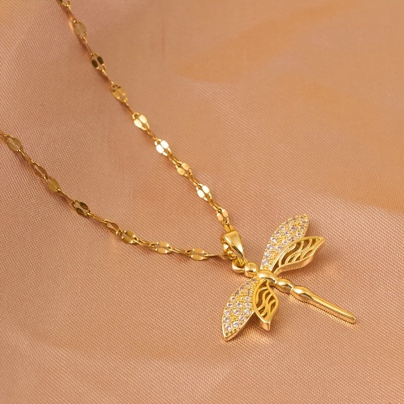 Are you looking for a piece of jewelry that combines delicacy, luxury, and captivating allure? We present to you the enchanting Dragonfly Necklace, an artistic masterpiece designed to illuminate your look and captivate you with its irresistible sparkle. Let this necklace be your unique touch that speaks volumes about your refined taste and passion for beauty, adding an unforgettable charm to every moment.