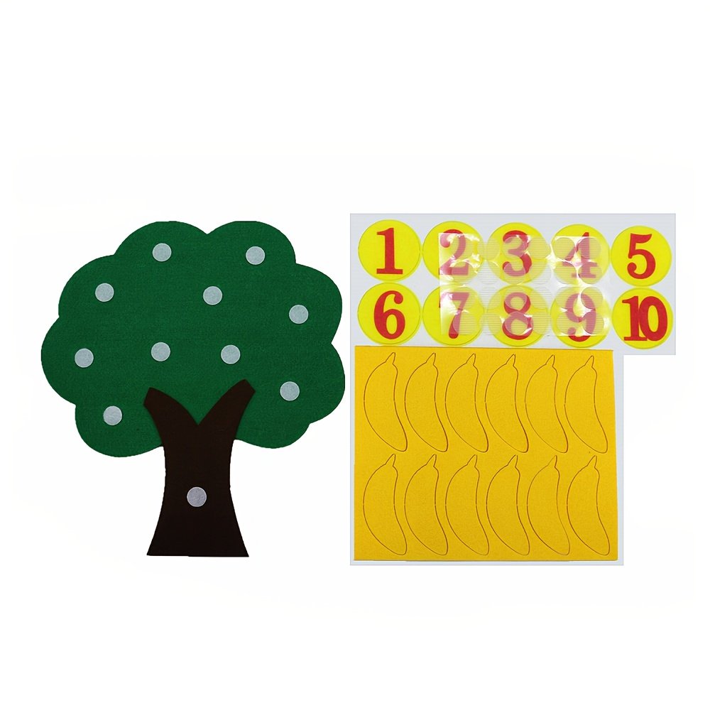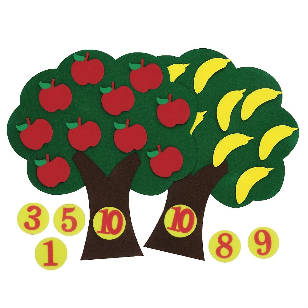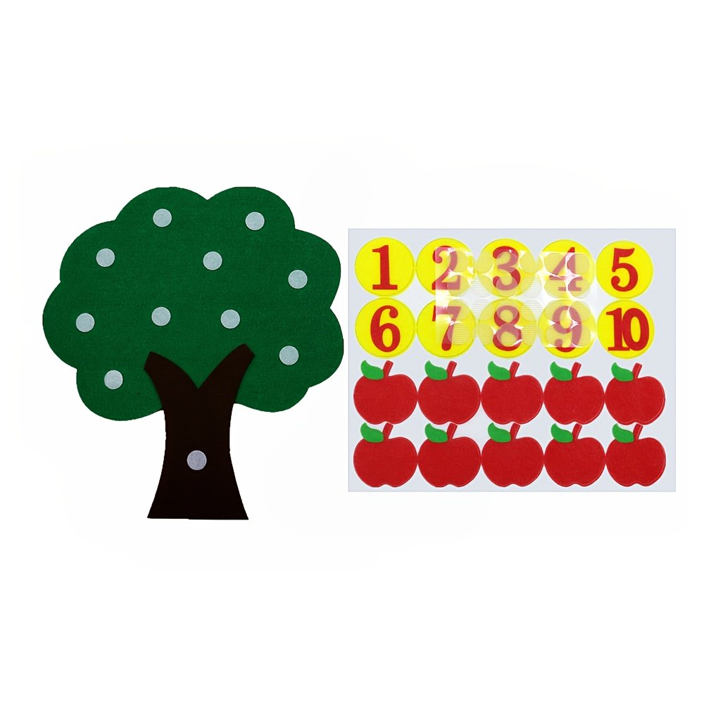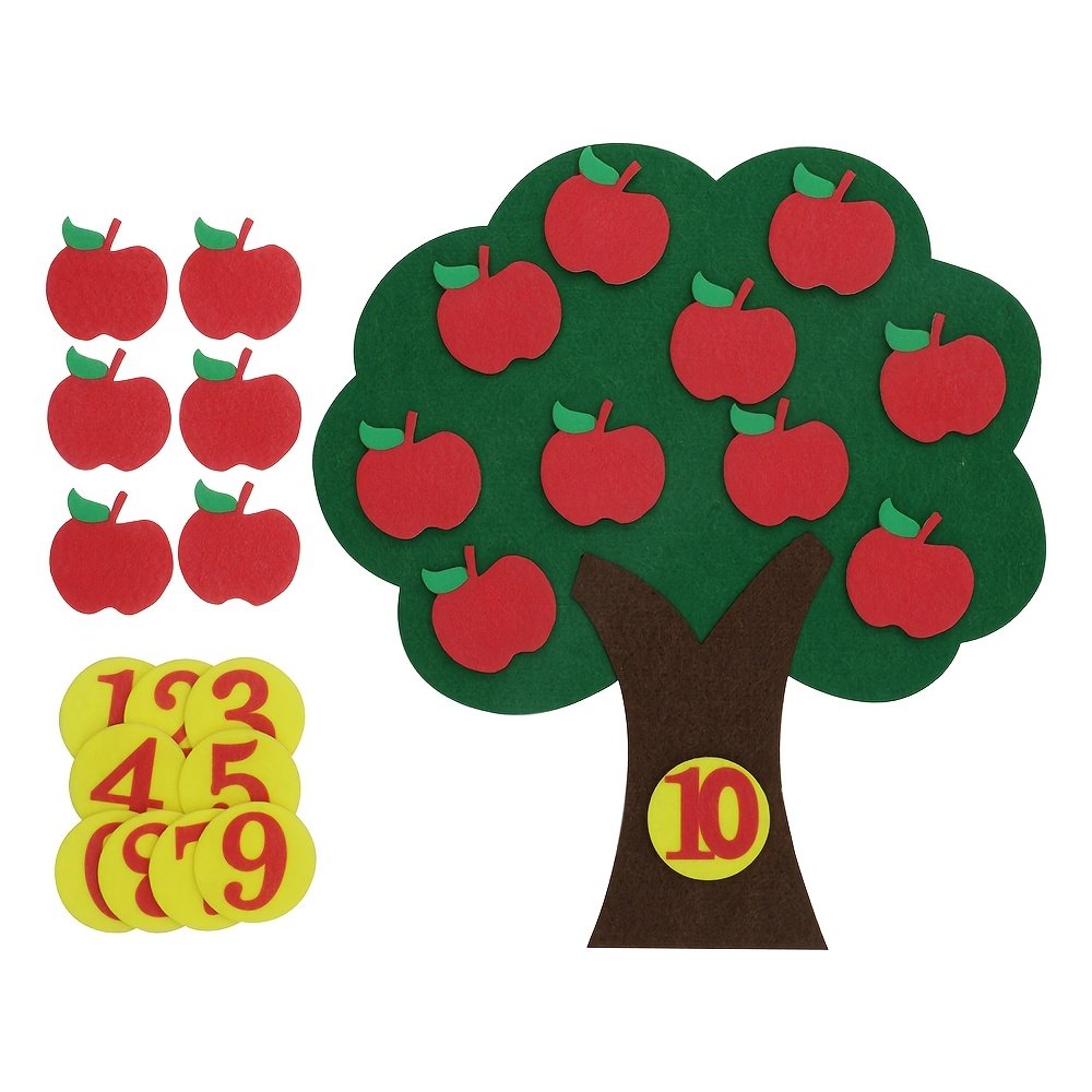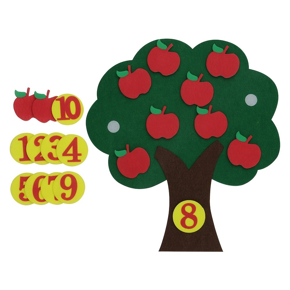 Are you looking for an innovative and fun way to teach your child the basics of numbers and arithmetic? We present to you the interactive apple tree-shaped felt number board, your child’s ideal companion on their first educational journey. This innovative educational toy is designed to combine fun and benefit, helping your little one explore the world of numbers, counting, and arithmetic with ease and creativity, opening new horizons for early learning and educational enlightenment.