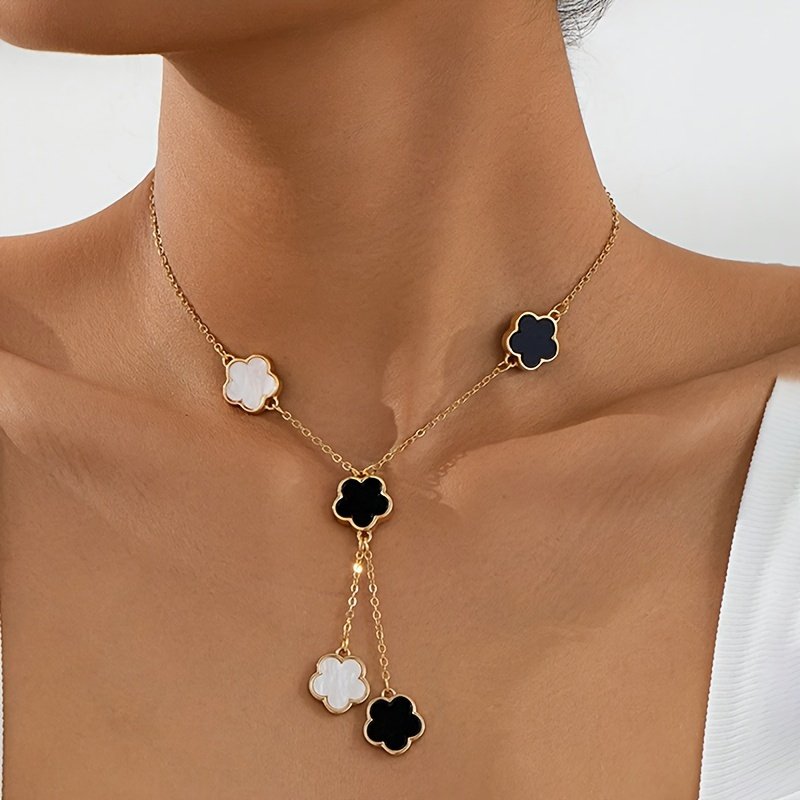 Are you looking for a piece of jewelry that adds a touch of grace and charm to your look? We present to you the Elegance Y Necklace, an artistic masterpiece designed to highlight your beauty and turn heads on every occasion. Its unique Y-shaped design with a captivating floral pendant makes it the perfect addition to your jewelry collection, whether you’re preparing for a special evening or seeking a distinctive everyday accessory.