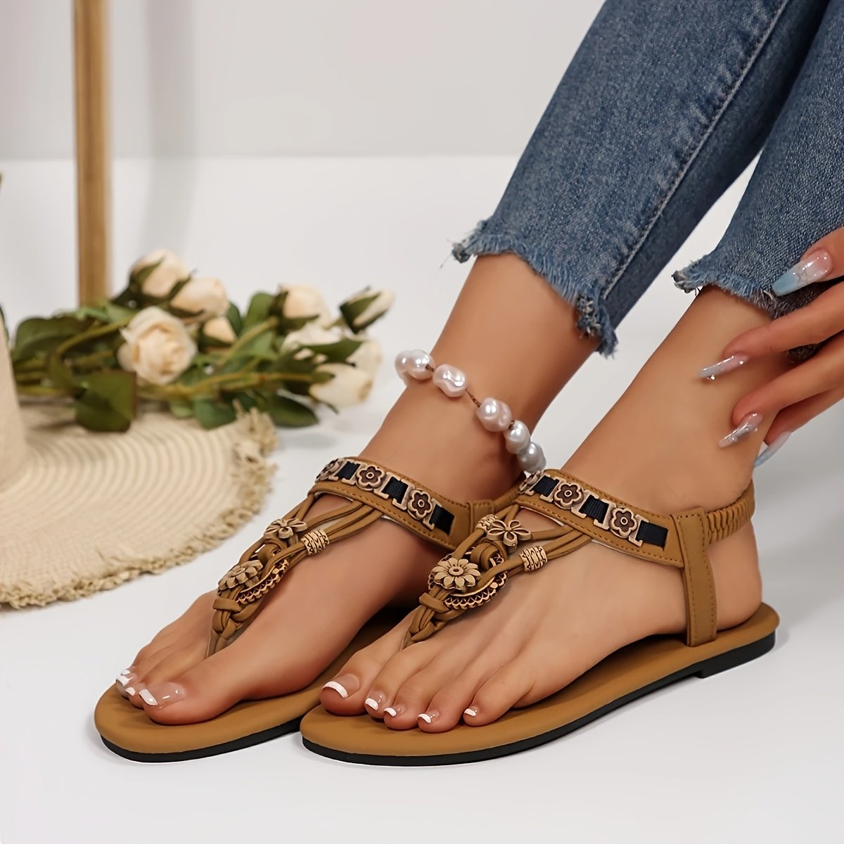 Immerse yourself in the world of ultimate bohemian elegance with our captivating flat sandals, specially designed for the modern woman who loves distinction and comfort. These sandals are not just an accessory; they are an expression of your free spirit, combining artistic Boho-inspired design with unparalleled comfort, making them a perfect companion for all your warm-weather adventures.