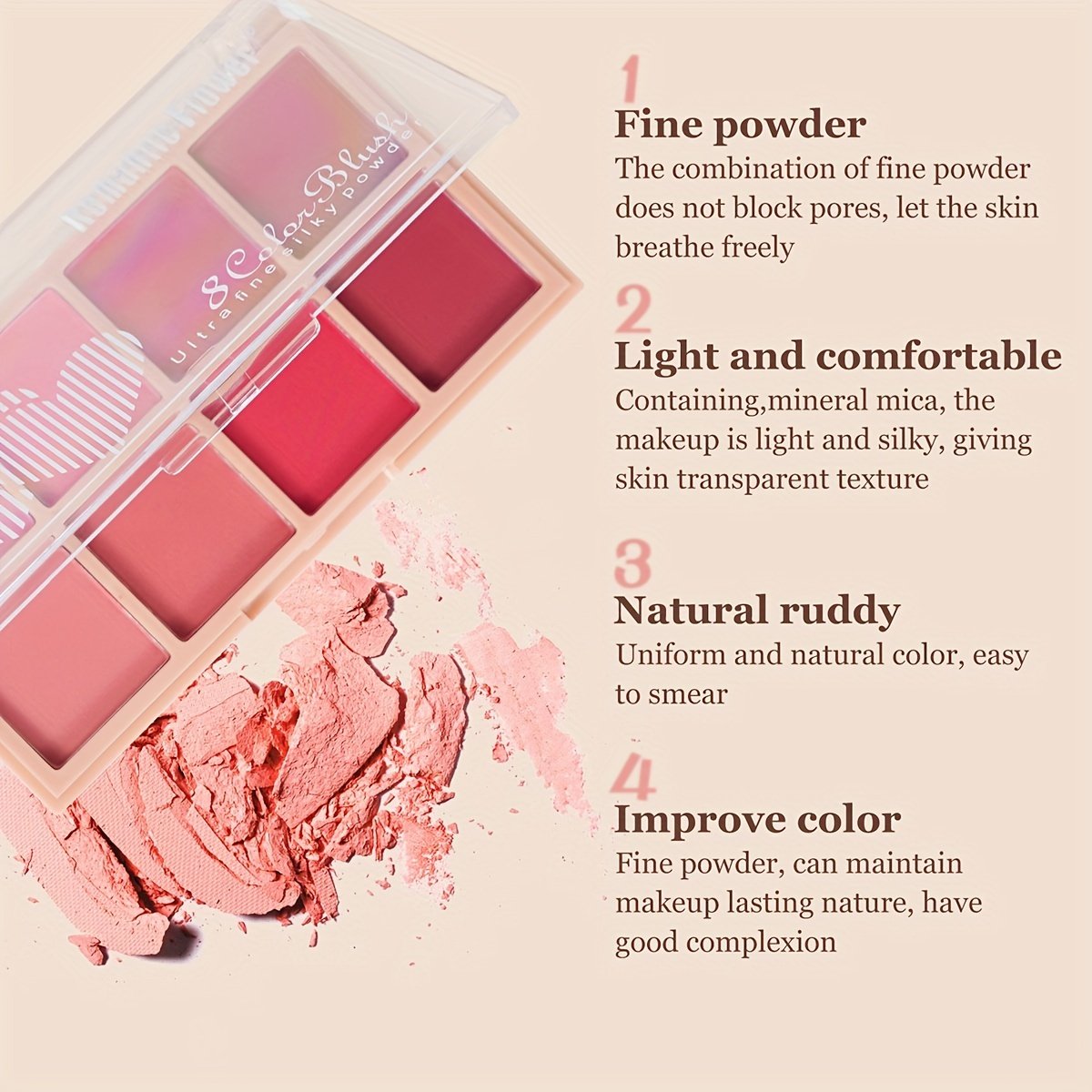 - Long-Lasting Wear: No need to worry about reapplying your makeup! Enjoy vibrant and attractive cheek color that stays put for long hours, ensuring you a fresh and radiant look from morning until evening without the need for frequent reapplication.