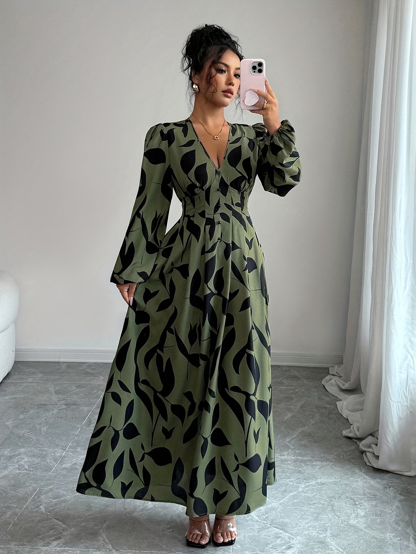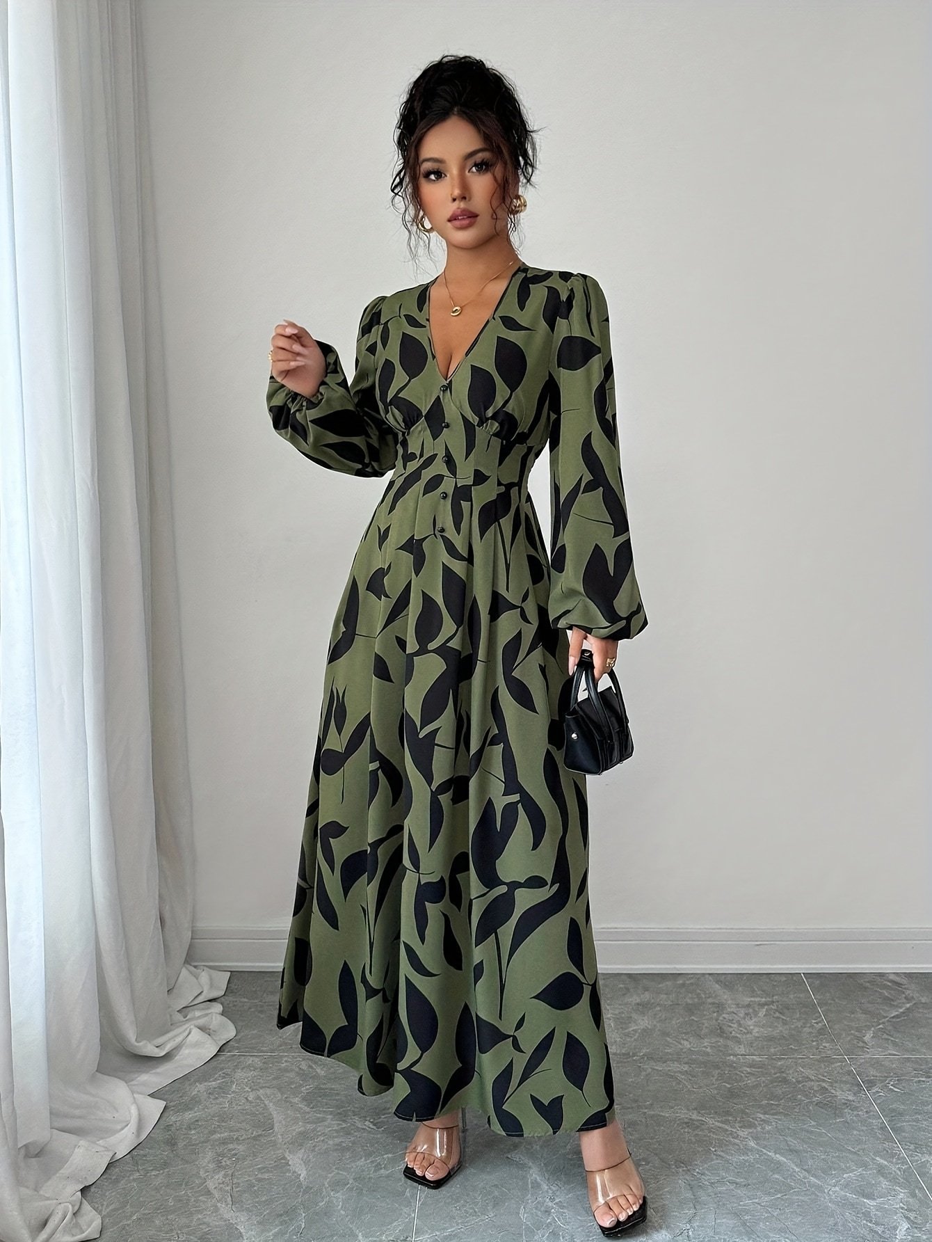 - Design Blending Sophistication and Allure: It features an elegant V-neckline that highlights the beauty of your neck, long sleeves adding a touch of modesty and sophistication, a gathered waist, an A-line silhouette, and a folded hem, offering you a complete and comfortable feminine look.