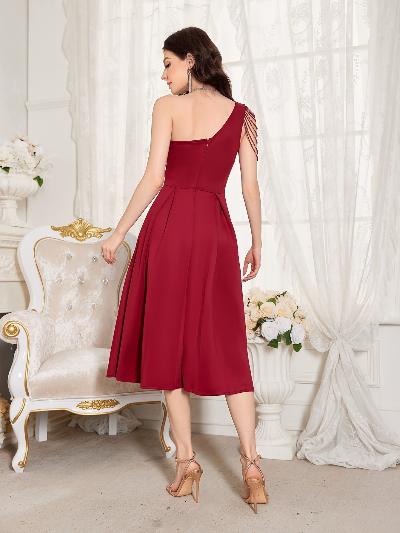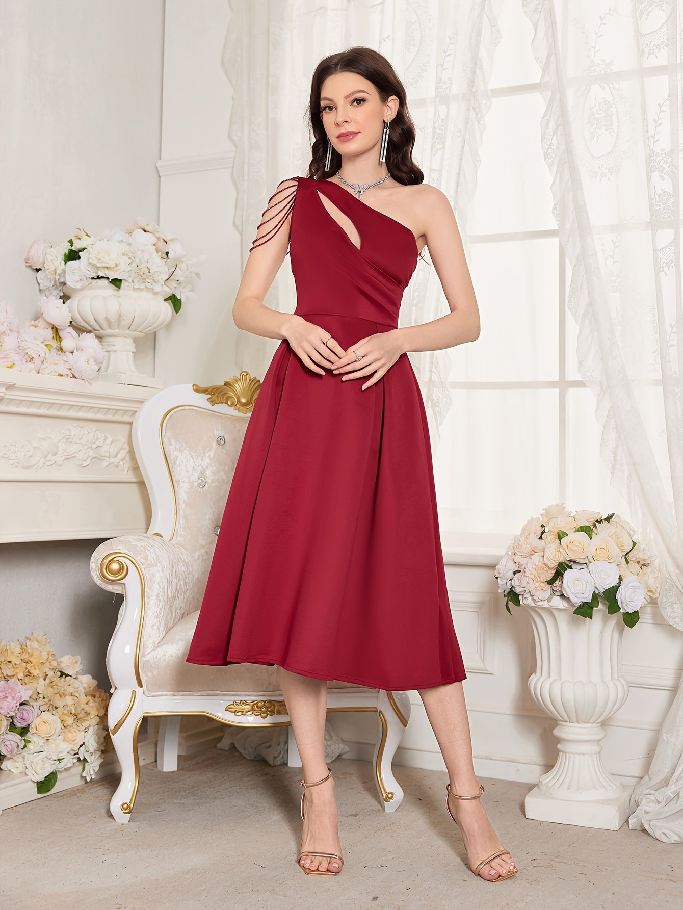 Get ready to be the star of any occasion with this enchanting one-shoulder dress, specially designed to give you an unforgettable look and breathtaking glamour. This elegant dress combines modern boldness with classic luxury, embodying sophistication in its finest form. Capture attention with a touch of magic and uniqueness in every step.