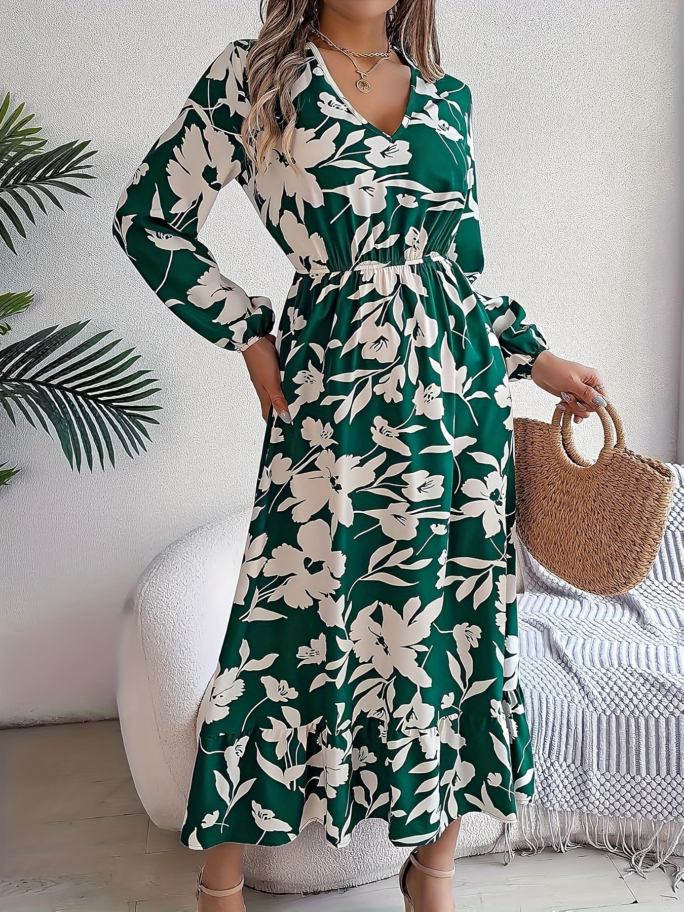 Get ready to shine with unparalleled elegance in our enchanting floral maxi dress! A unique blend of classic sophistication and modern flair, it gives you a complete look perfect for all your occasions, from daily gatherings to special celebrations. Let this dress be your gateway to a world of beauty and comfort simultaneously, making it the ideal choice for the modern woman seeking distinction in spring and autumn.