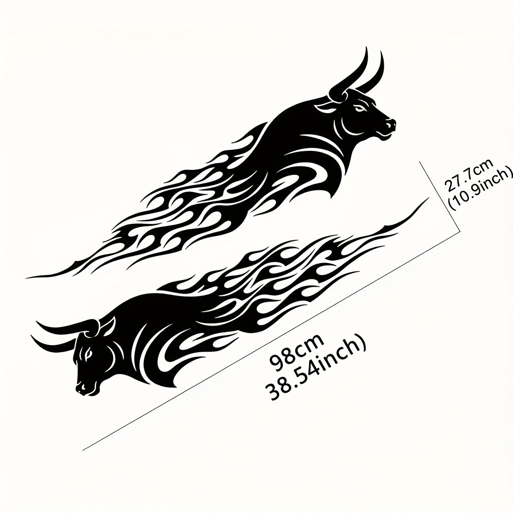 • Bold and Striking Design: A two-piece set featuring the iconic flaming bull design in deep black. Its large size ensures maximum visual impact, adding a touch of ferocity and power to your vehicle and instantly grabbing attention.