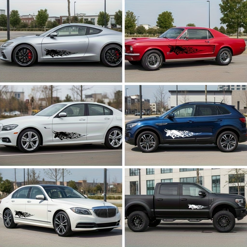 • Glossy and Attractive Finish: The shiny surface gives these decals a professional luster, enhancing the dynamic beauty of the flame and bull design. This makes your vehicle look luxurious and modern with an unparalleled finish.