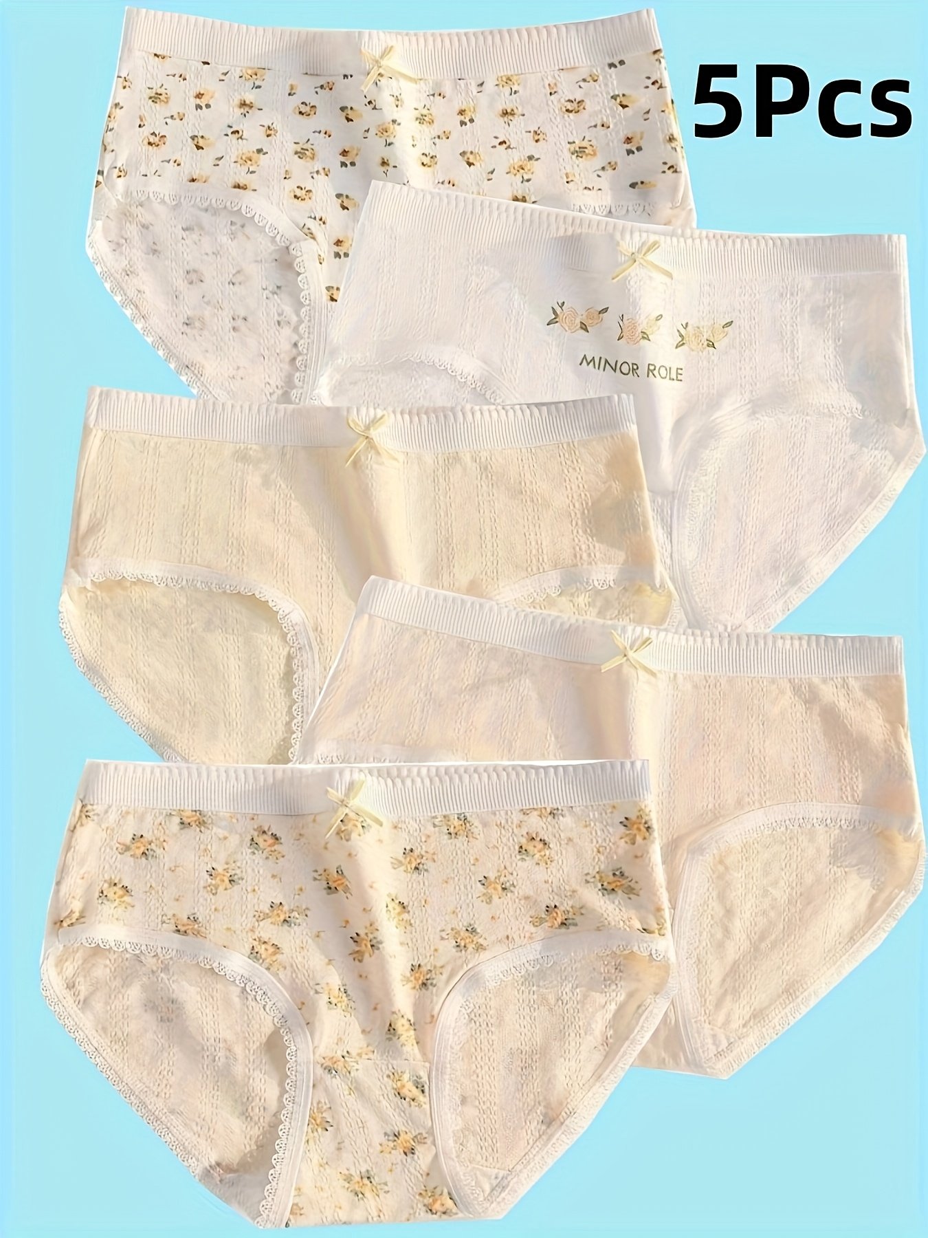 Discover the secret to ultimate comfort and floral elegance with our 5-piece underwear set, specially designed to gently hug your curves and provide perfect support all day long. Let your skin breathe and indulge in the luxurious feel of cotton and attractive floral designs that add a touch of femininity and charm to your intimate look, making you feel confident and beautiful from the inside out.
