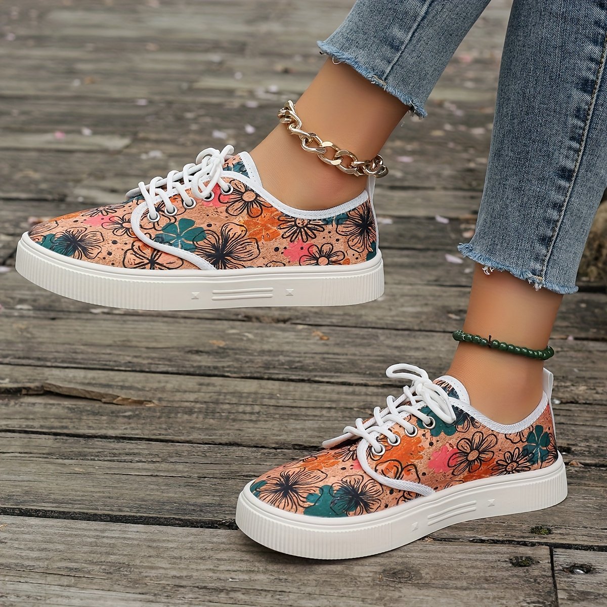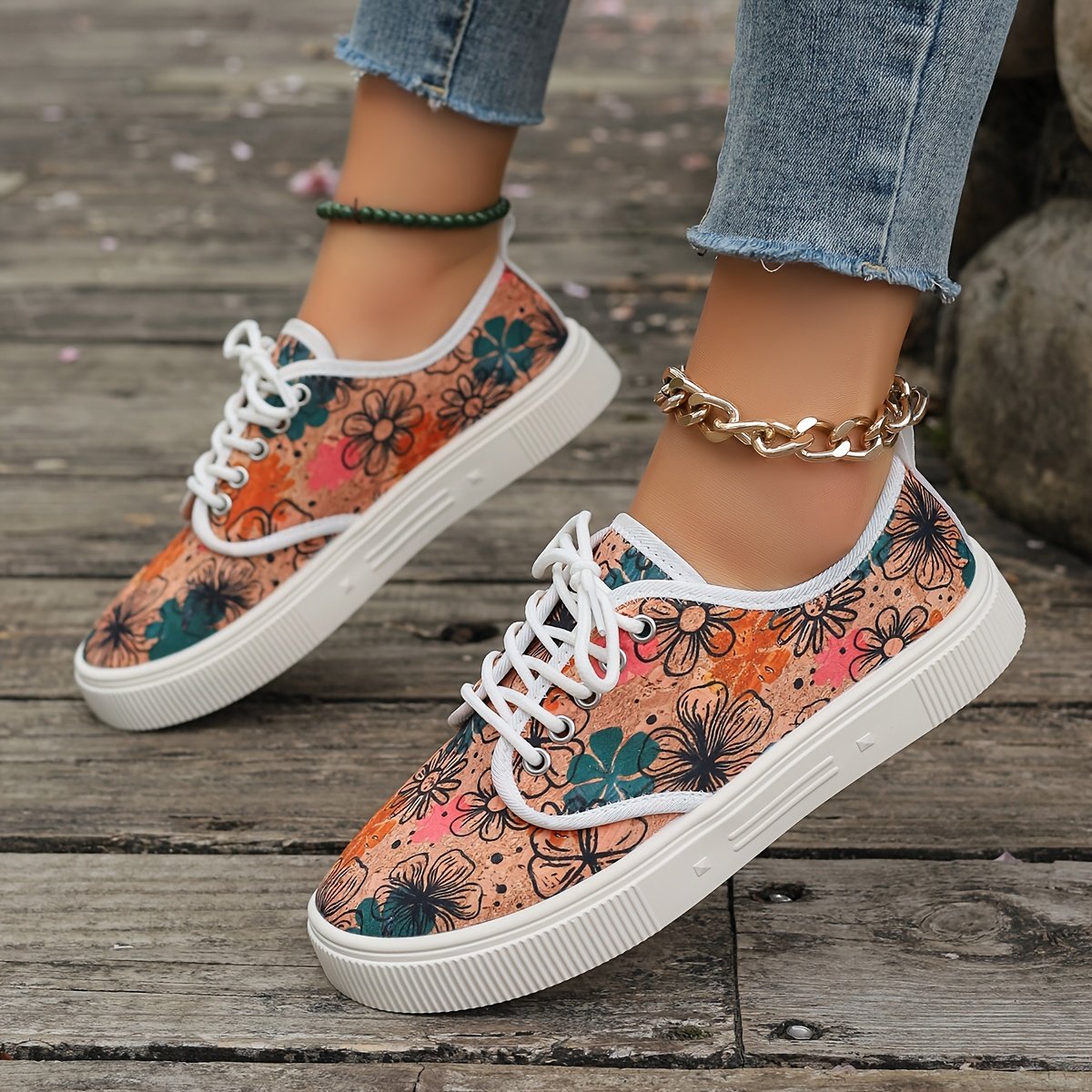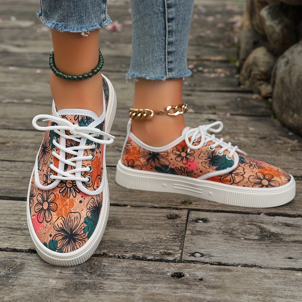 Are you searching for a shoe that combines unique style with ultimate comfort? We present to you a women’s plus size sneaker, specially designed to add a touch of joy and classic elegance to your daily look. With its vibrant floral design featuring distinctive random patterns in an attractive orange and pink mix, and its captivating retro style, this shoe will be your perfect choice to shine in all seasons and casual occasions.