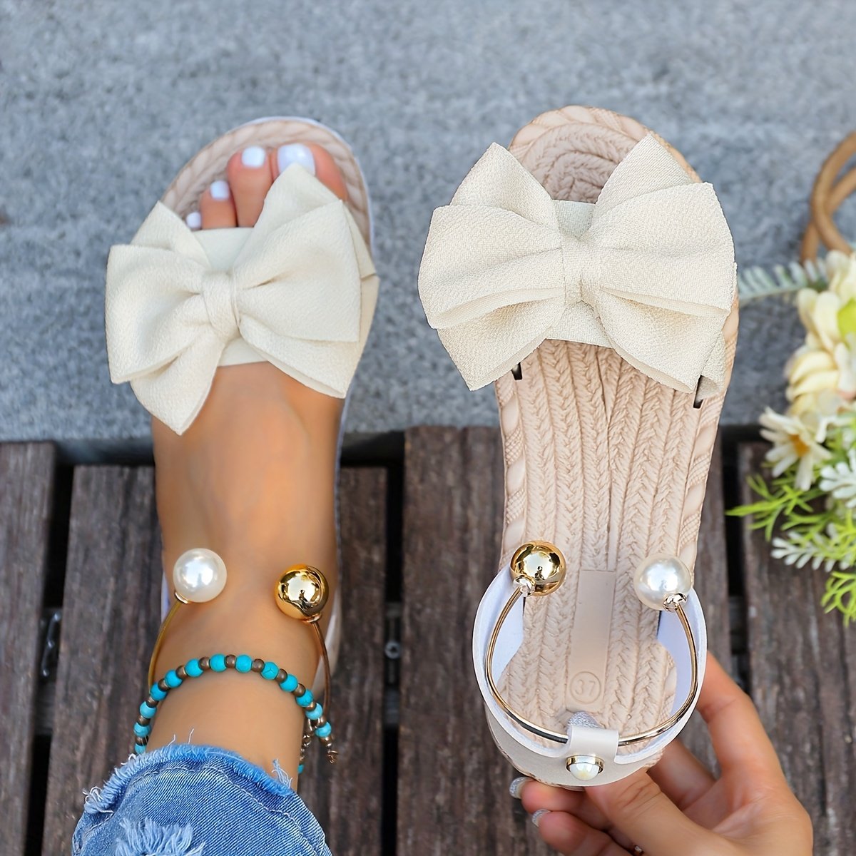 • Charming Feminine Design: Adorned with delicate arches in soft beige and white, these sandals offer an elegant and attractive feminine look that suits all tastes and is easy to style.