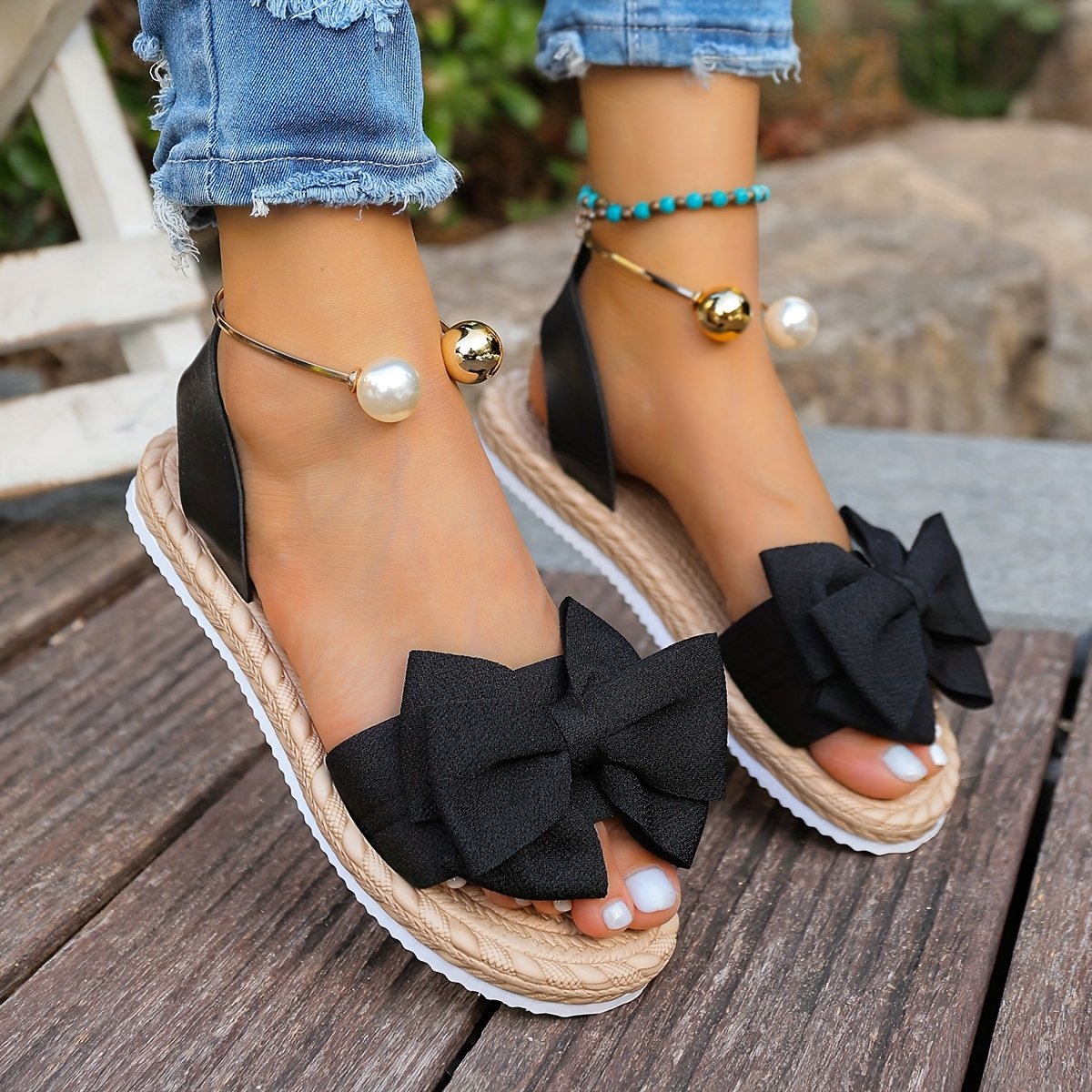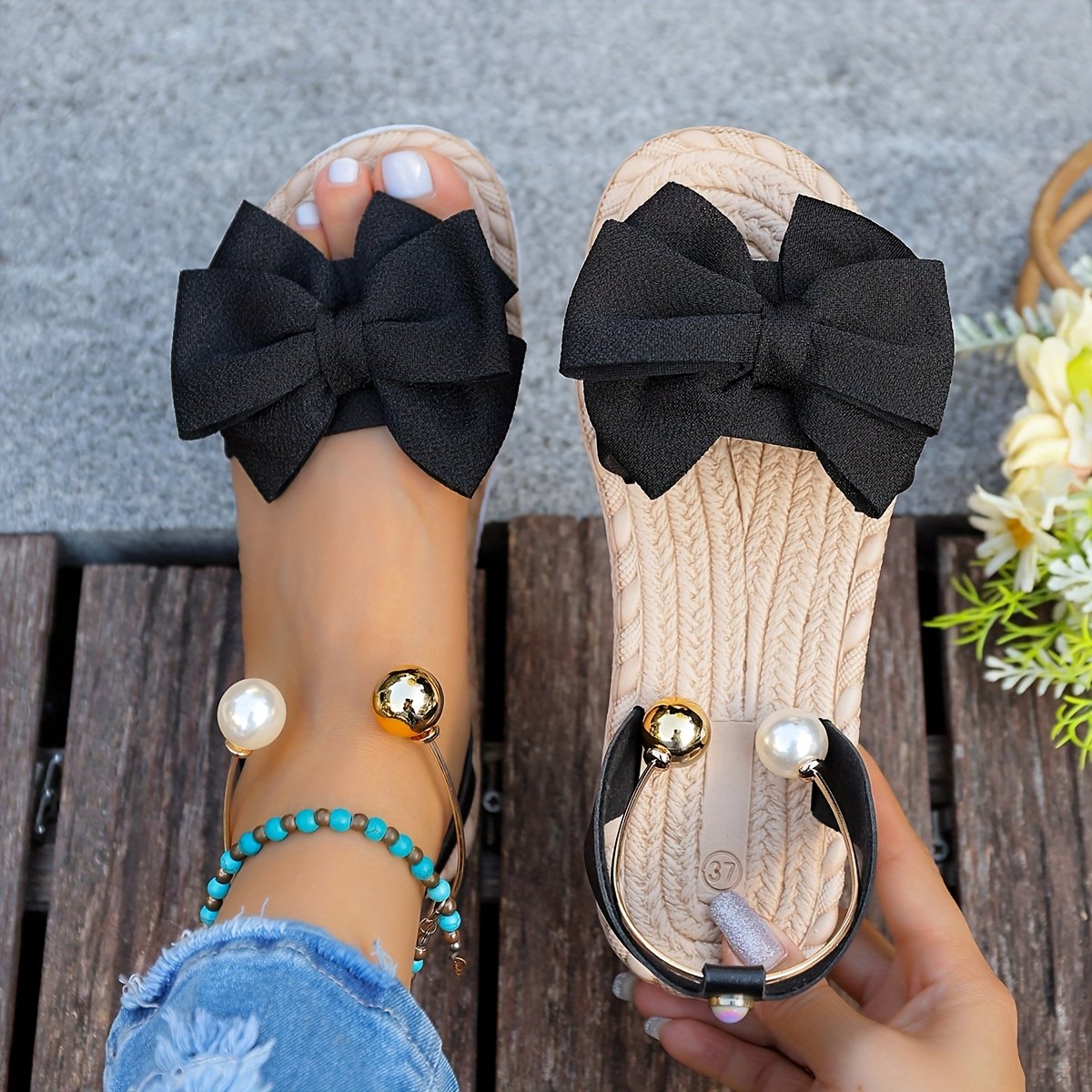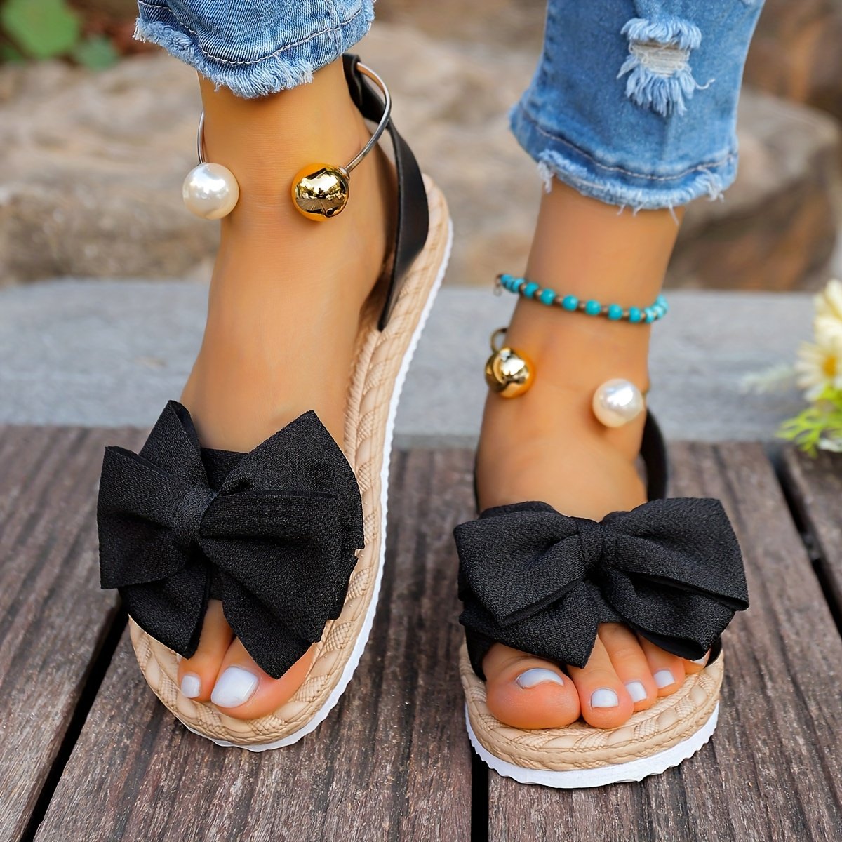 • Touch of Golden Luxury: Elegant golden embellishments sparkle on the sandals, adding a refined touch of luxury that catches the eye and highlights your elegance with sophisticated style.