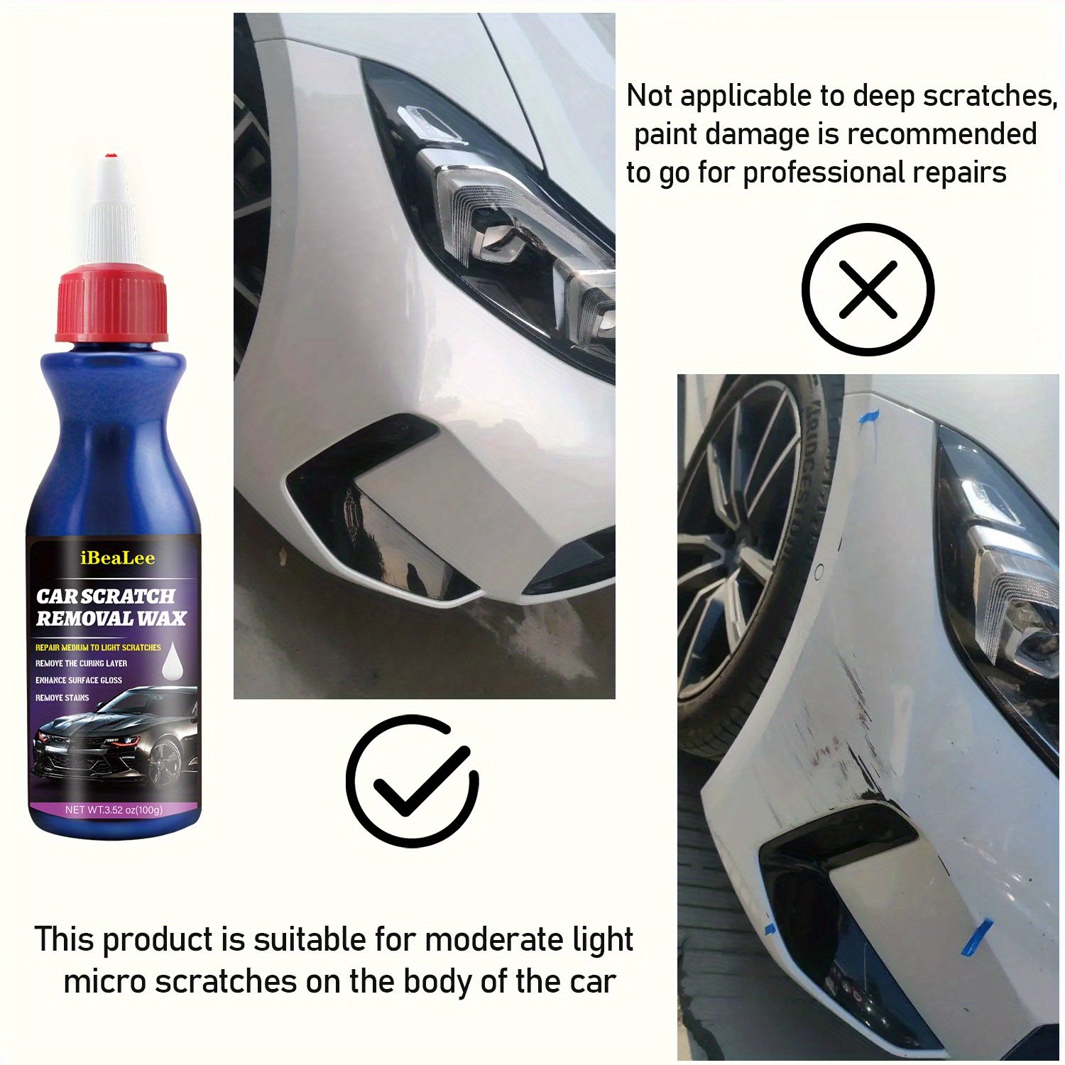 • Safe and Gentle Formula: Made from plant-based materials, it ensures a safe repair process for your car’s paint without any damage or undesirable side effects.