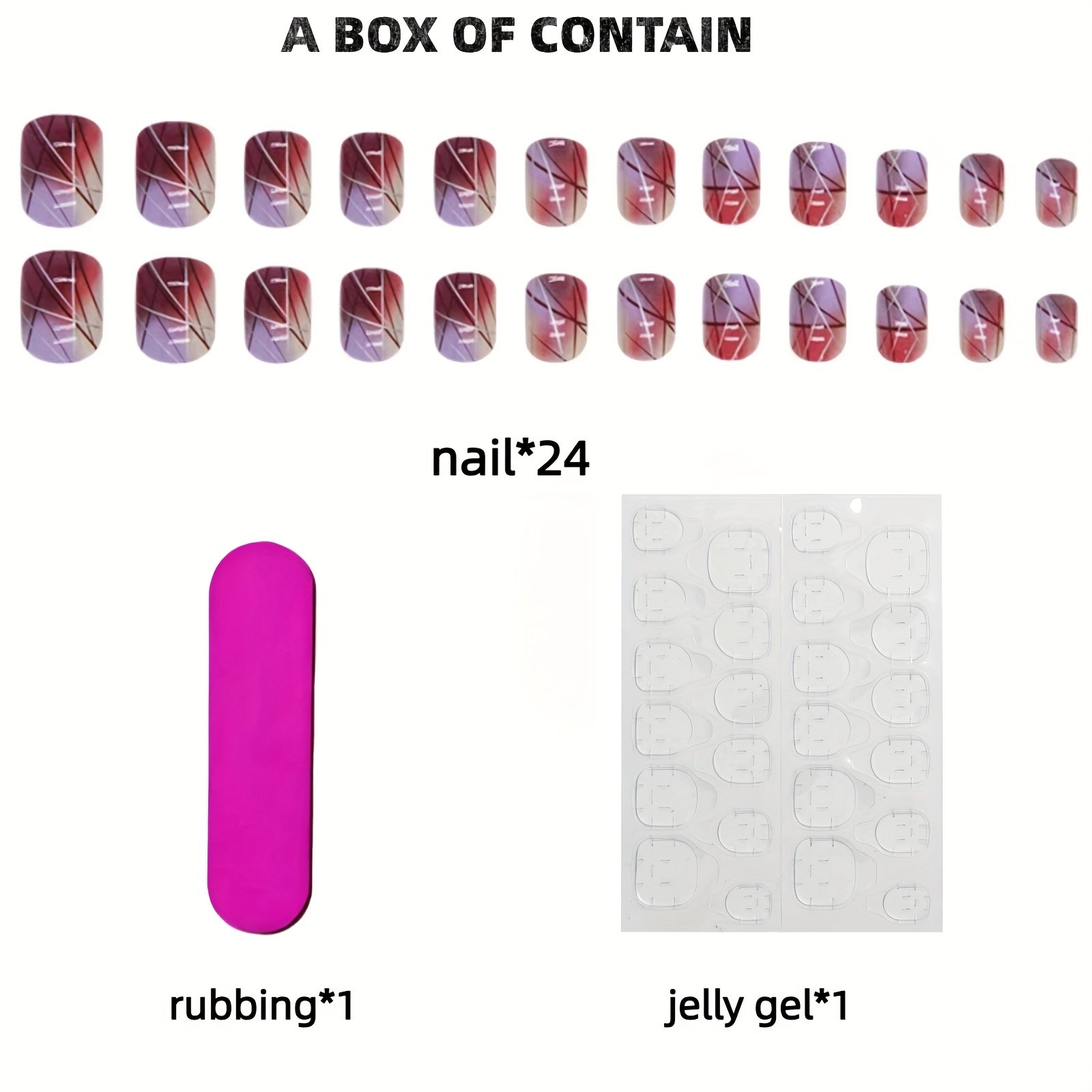 - Ready-to-Wear with Ease: The set includes everything you need: a small nail file and strong jelly glue, for smooth application and long-lasting hold without hassle or the need for any additional tools.