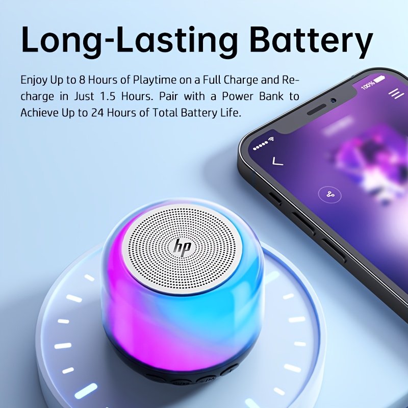 With the **HP** Portable Wireless Speaker, you’ll discover a new world of enjoyment and entertainment. Its innovative design combines superior sound performance with captivating dynamic lights, offering you a perfect companion that adds a touch of joy and excitement to every gathering, trip, or even a moment of relaxation. Enjoy freedom of movement and immersive sound that captivates you wherever you go.